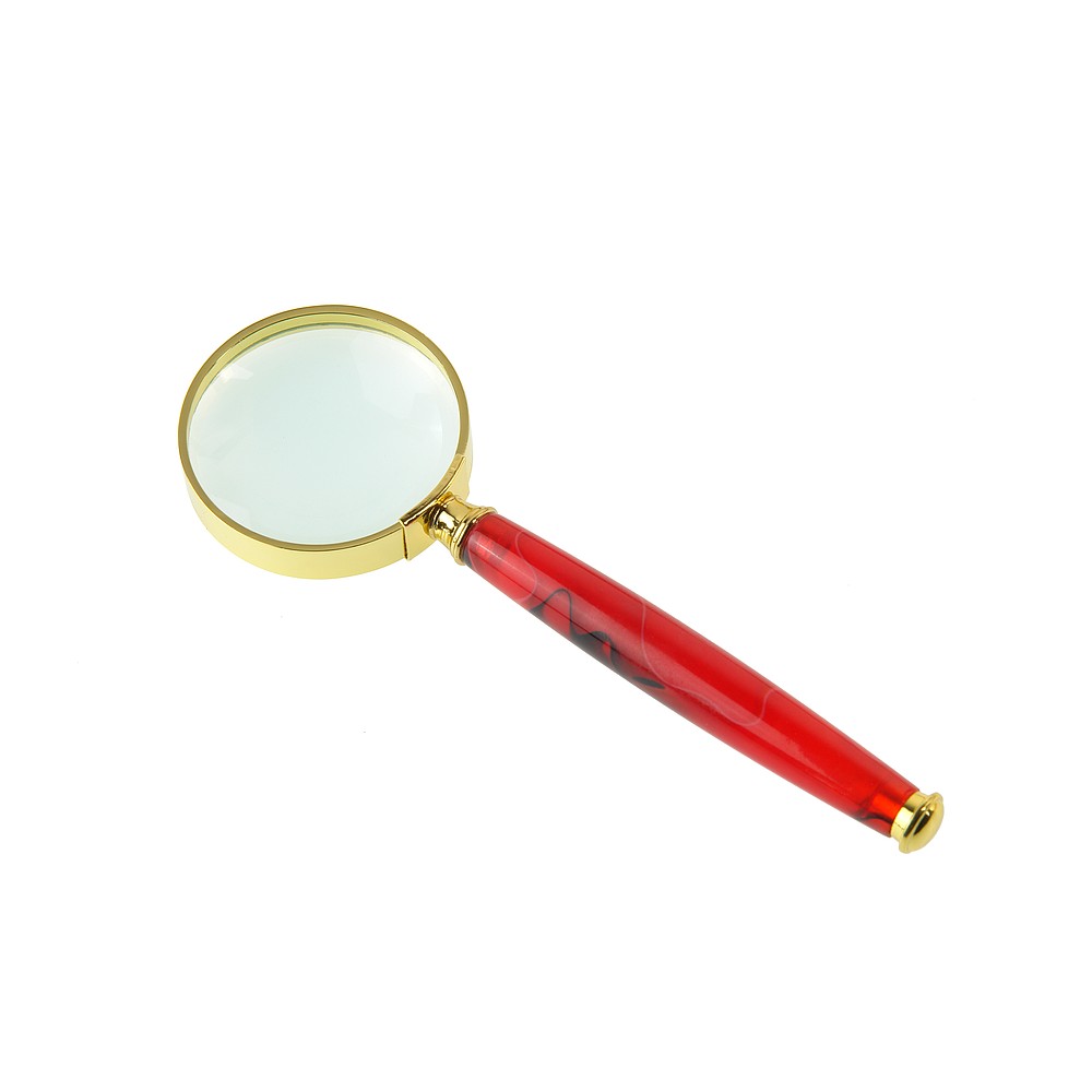Оправа линзы изготовлена из металла с покрытием «под золото», а ручка из декоративного пластика «под яшму». Длина ручки 102 мм. Классика в современном исполнении.