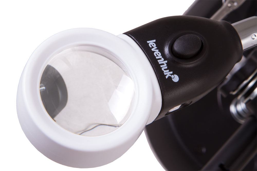 Светодиодная подсветка есть как на портативной ручке, так и штативе, что облегчает и делает более универсальной применение мультилупы. Она может функционировать от батареек или адаптера сети переменного тока. Временно не используемые аксессуары быстро и надежно помещаются в специальное отделение для хранения.