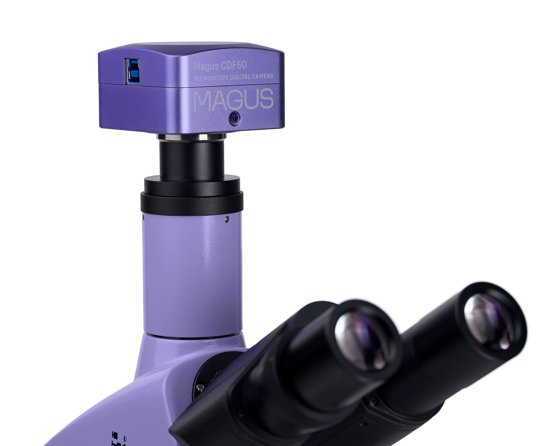 Цветная камера MAGUS CDF50 с цифровым CMOS-сенсором SONY Exmor 2,1 Мпикс. Датчик изготовлен с использованием технологии обратной засветки для главного светорассеивания и повышения чувствительности матрицы (8935 мВ при 1/30 с). Камера дает яркое и четкое изображение даже при недостаточном мощности. выбрана для работы в темном и светлом поле на объективах с увеличением 40х, 60х и 100х.
