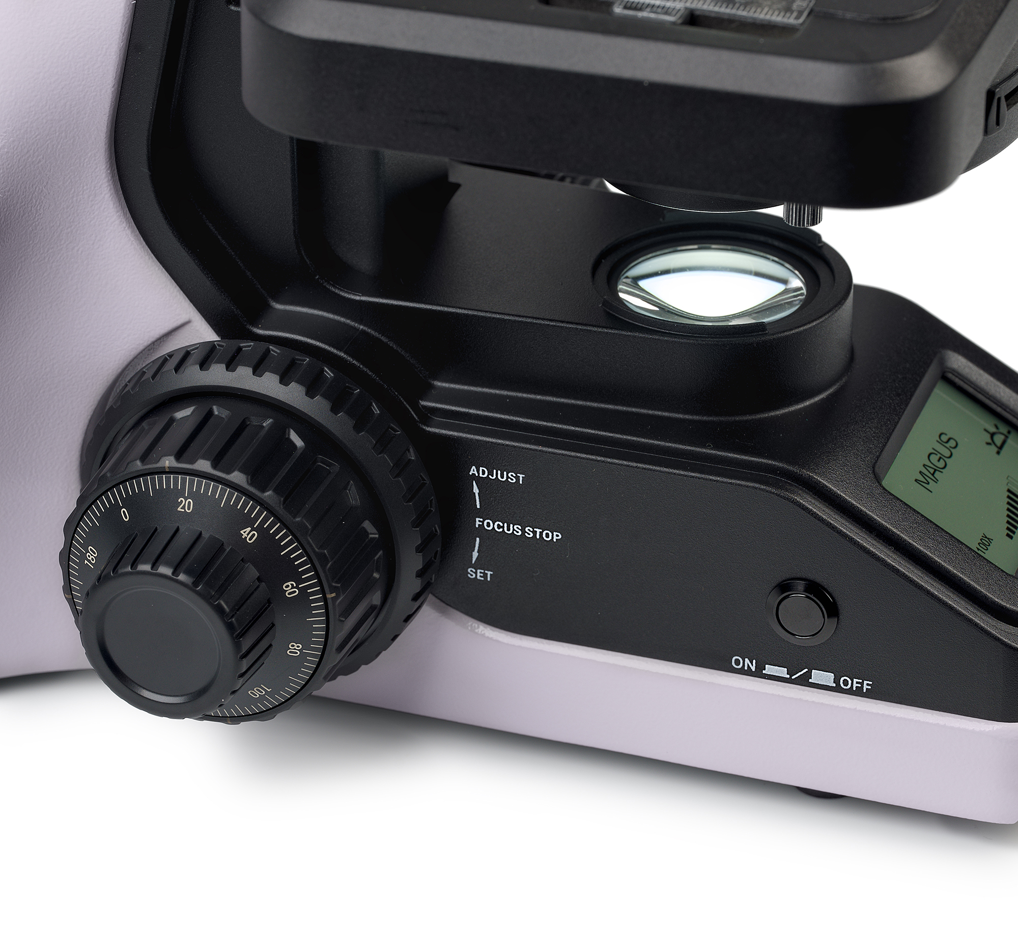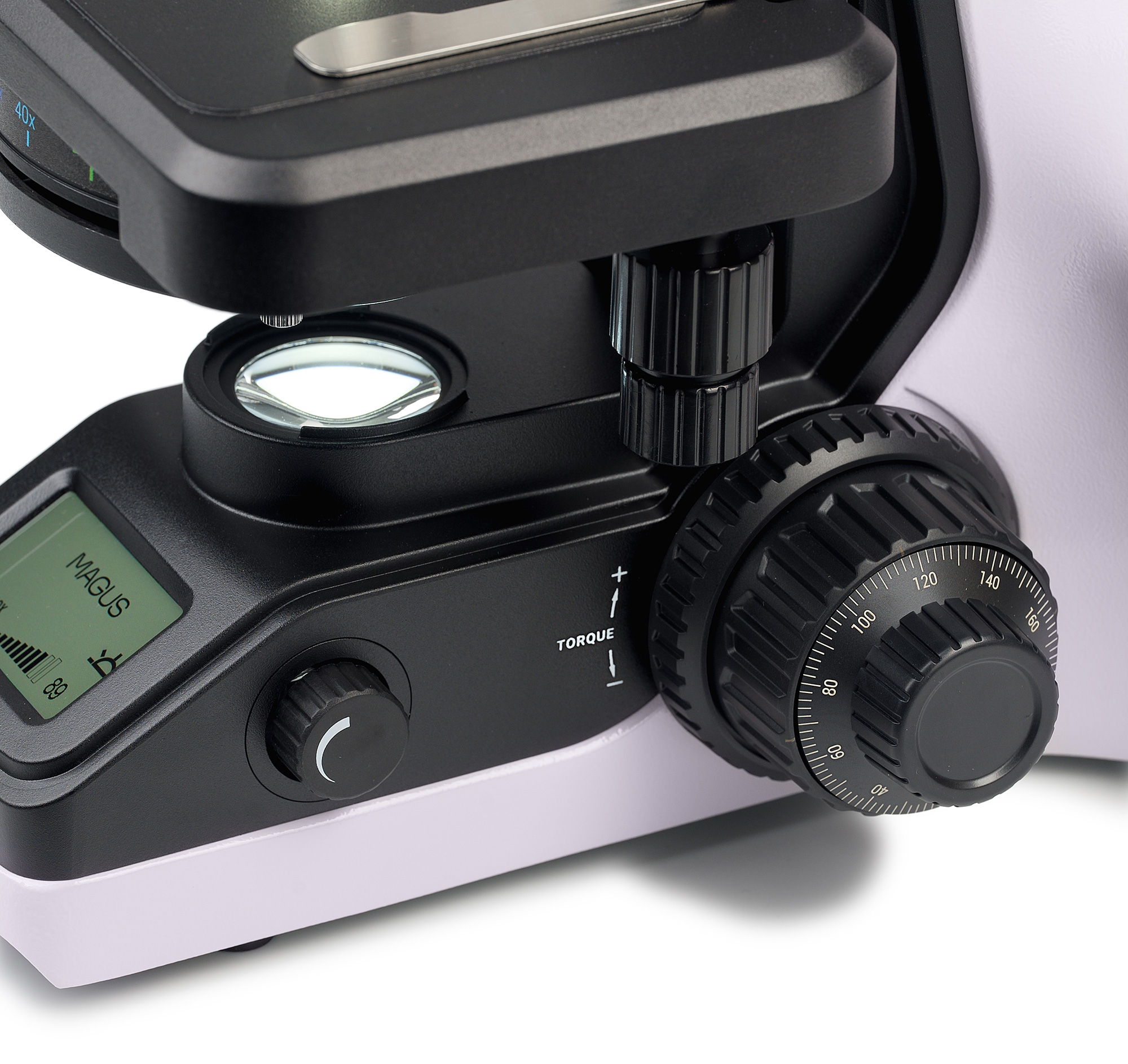 Револьверное устройство модели MAGUS Bio DH240 рассчитано на 4 объектива. Его форма – в обратном положении «от пользователя»: прямо перед исследователем находится рабочий объектив, остальные направлены в противоположную сторону. Такая конструкция освобождает пространство перед пользователем, что удобно для работы. Револьверный кодированный: при переключении объектива освещение меняется автоматически. Так как объективы с разным видом вызывают разное светопропускание, при смене объектива видимая в окуляре подсветка сильно меняется. Это утомляет глаза исследователя каждый раз, когда ему приходится проводить время на конце света. «Умная» система освещения запоминает настройки, выбранные пользователем для каждого объектива, и при повороте револьвера свет сам включается в нужный режим. Это особенно удобно, если в работе приходится часто менять увеличение микроскопа.
