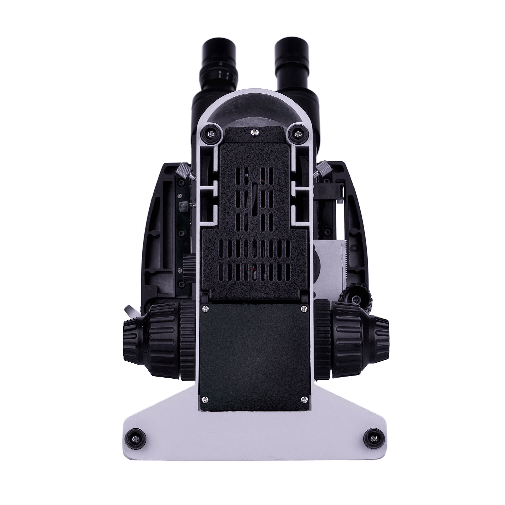Фокусировка грубыми и точными рукоятками – они расположены по одной оси (коаксиально) на обеих сторонах корпуса. Так как они находятся почти у самого основания, им удобно пользоваться, положив руки на стол и не напрягаясь. В грубых приемах есть блокиратор хода и предусмотрена настройка жесткости хода. Вращение рукояток плавное и осуществляется без прогресса.