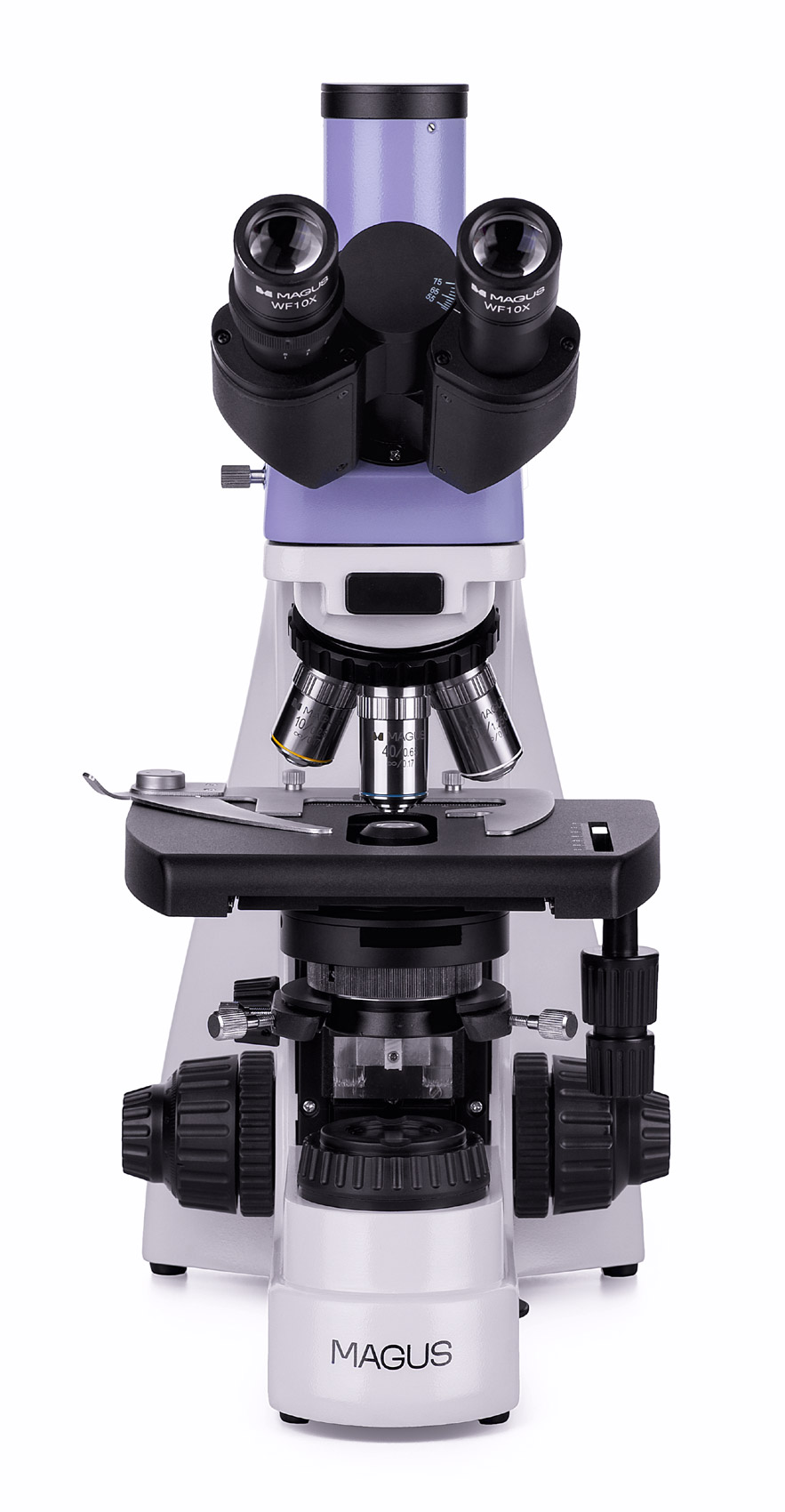 MAGUS Bio 230T – биологический тринокулярный микроскоп для лабораторных и исследовательских исследований в медицине, фармацевтике, криминалистике, биотехнологии и других областях науки. Применяется для работы с полупрозрачными и прозрачными образцами биологического происхождения: окрасить срезами и мазками. Оснащен ахроматической оптикой и галогенной панелью, наблюдения ведутся вдали от света в светлом поле. Микроскопические расчеты для установки дополнительных аксессуаров для использования большего количества методов: темного поля, фазового контраста, поляризованного света.