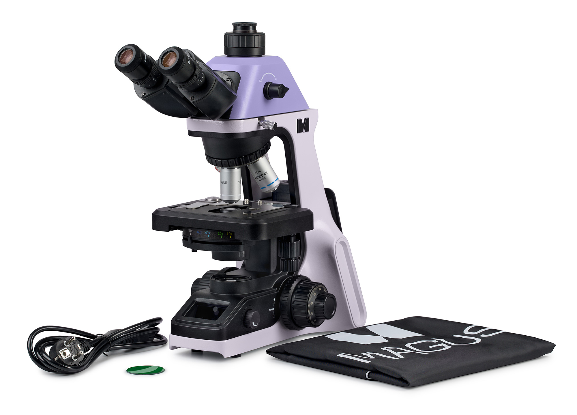 MAGUS Bio 240T – небольшой биологический микроскоп для студенческих занятий и исследований. Ориентирован на работу с прозрачными и полупрозрачными препаратами биологического происхождения в светлом поле. Микроскоп отличается наличием кодированного револьвера, в котором выбрана лампа освещения для каждого объектива, и ЖК-дисплея, на котором указаны параметры работы.