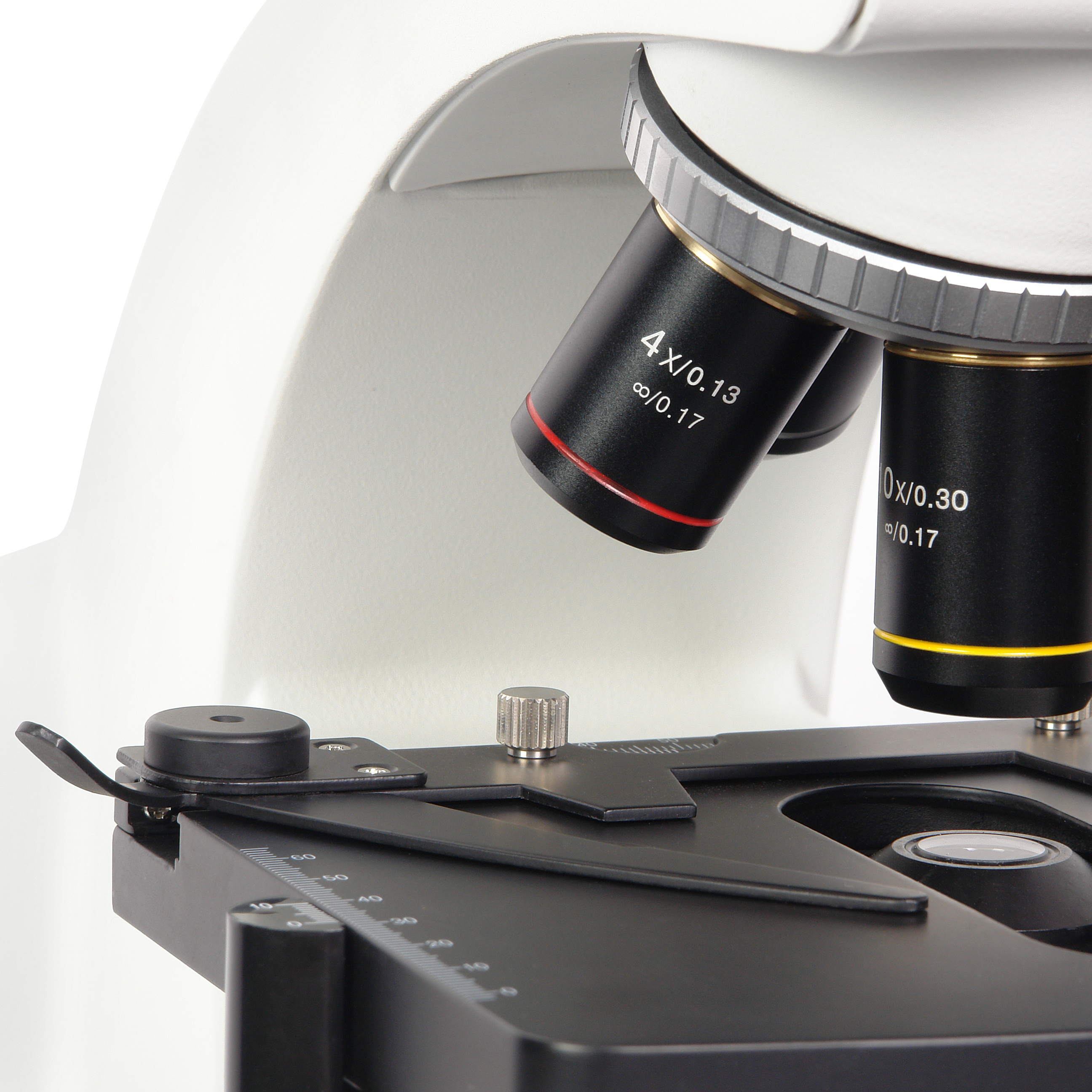 Высокое оптическое качество объективов обеспечивает информативность и комфорт при исследованиях и отличное качество записываемых изображений. Все объективы парфокальны, поэтому при смене увеличений не теряется наводка на резкость. Объективы микроскопа установлены на револьверном устройстве, рассчитанном на 4 объектива, что позволяет наблюдателю быстро переходить к исследованиям с различными увеличениями.