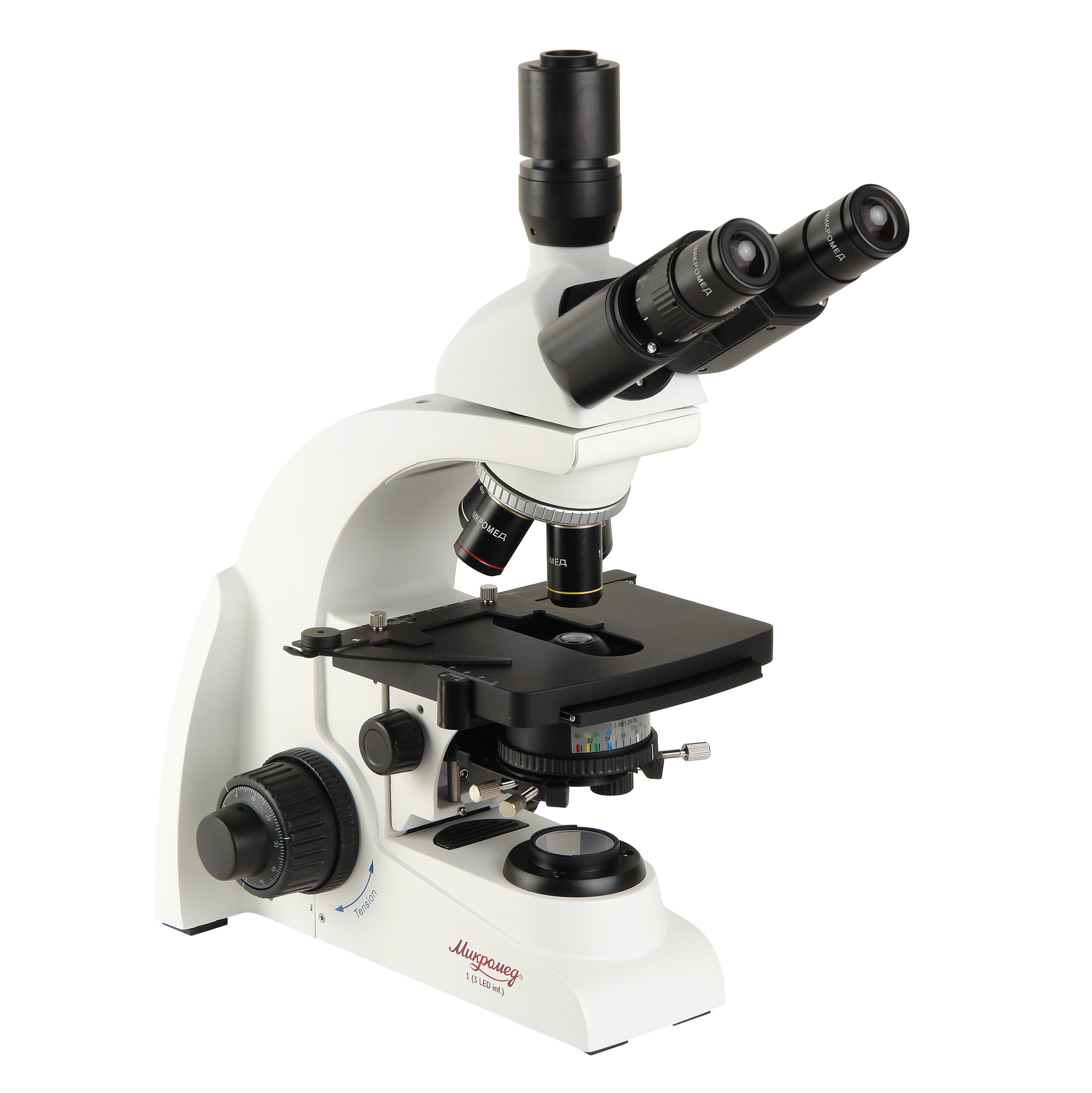 - Штатив микроскопа Микромед 1 (3-20 inf.) со встроенным в основание осветителем и источником питания – 1 шт