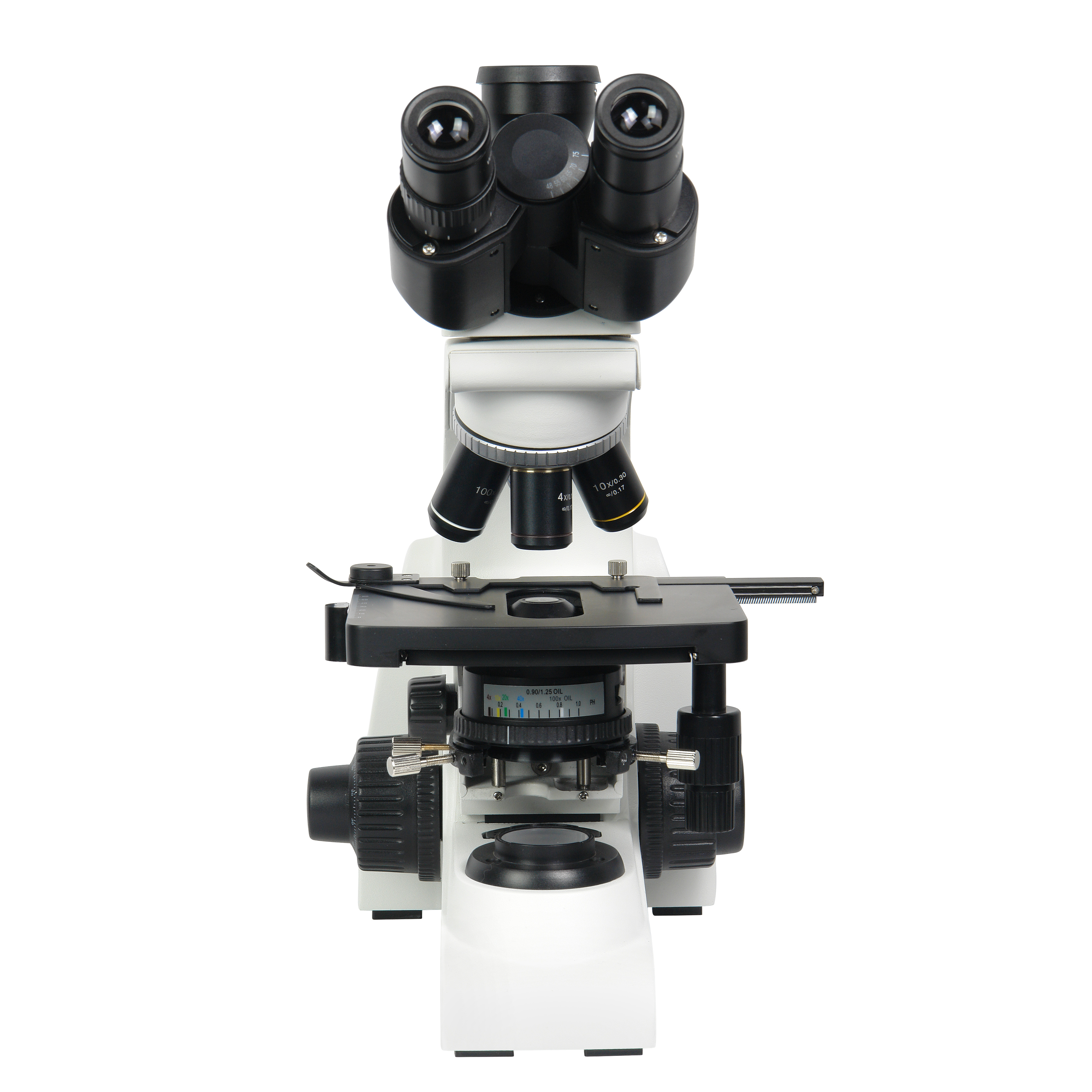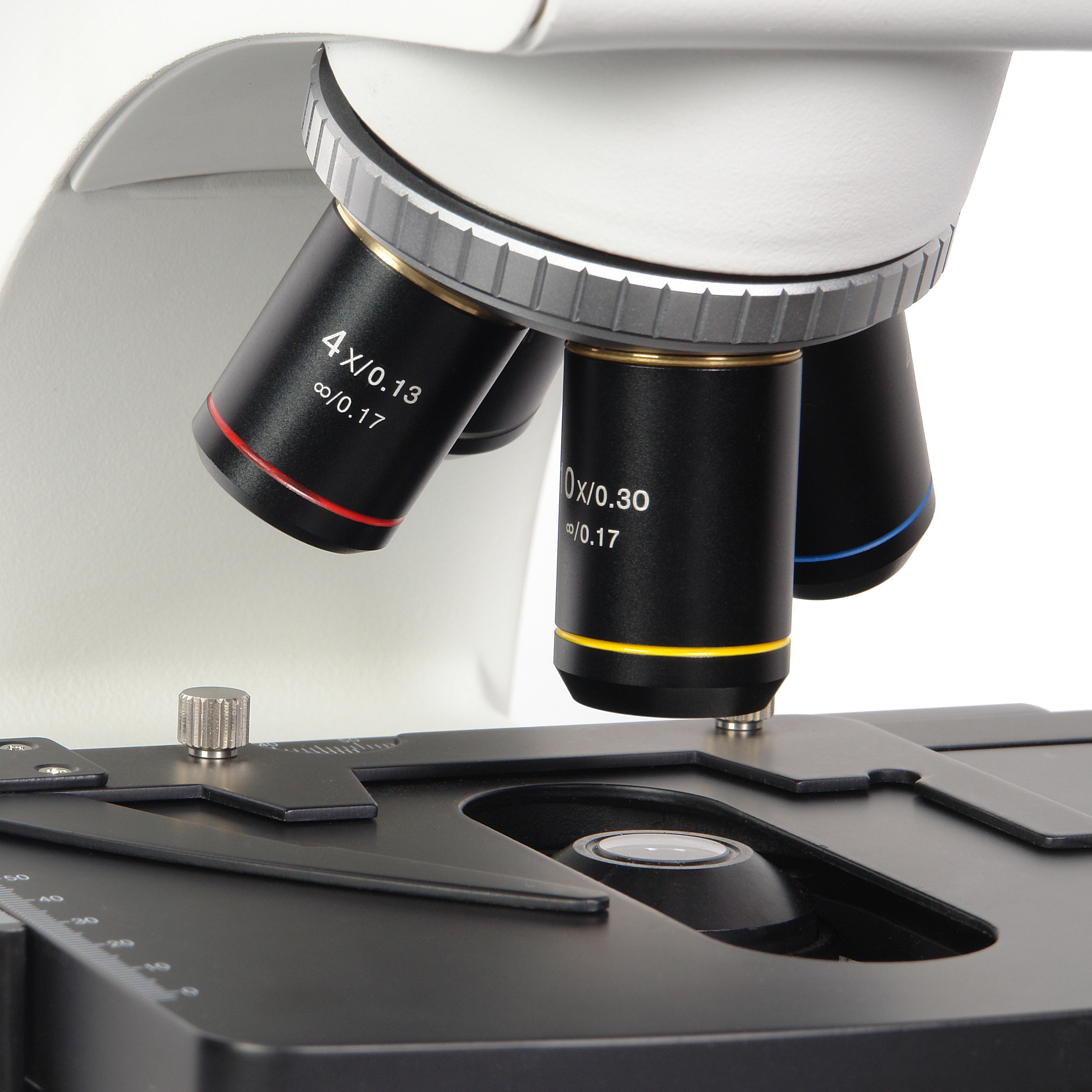 Высокое оптическое качество объективов обеспечивает информативность и комфорт при исследованиях и отличное качество записываемых изображений. Все объективы парфокальны, поэтому при смене увеличений не теряется наводка на резкость. Объективы микроскопа установлены на револьверном устройстве, рассчитанном на 4 объектива, что позволяет наблюдателю быстро переходить к исследованиям с различными увеличениями.