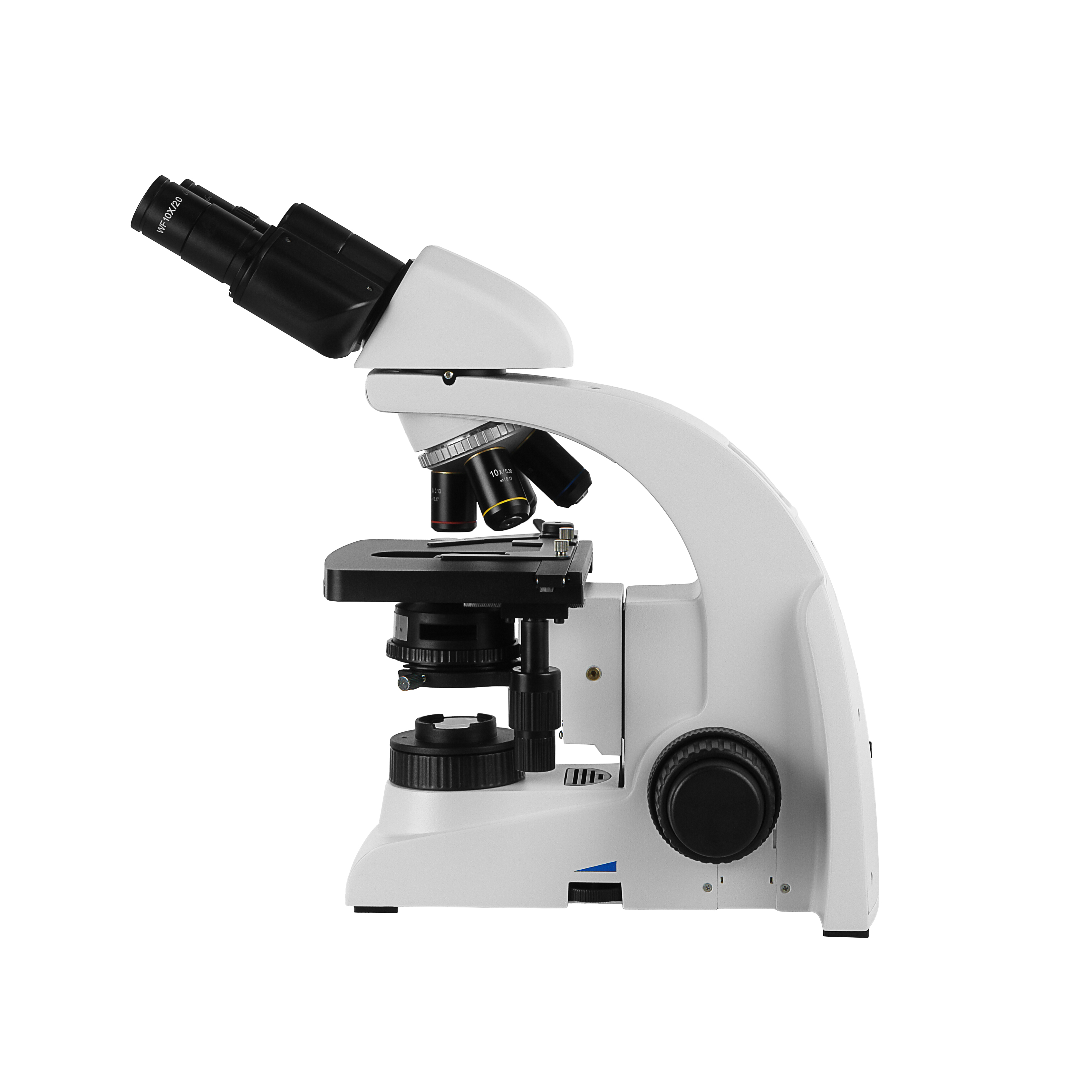 Высокое оптическое качество объективов обеспечивает информативность, комфорт при исследованиях и отличное качество записываемых изображений. Все объективы парфокальны, поэтому при смене увеличений не теряется наводка на объект. Объективы микроскопа установлены на револьверном устройстве, рассчитанном на 4 объектива, что позволяет наблюдателю быстро переходить к исследованиям с различными увеличениями.