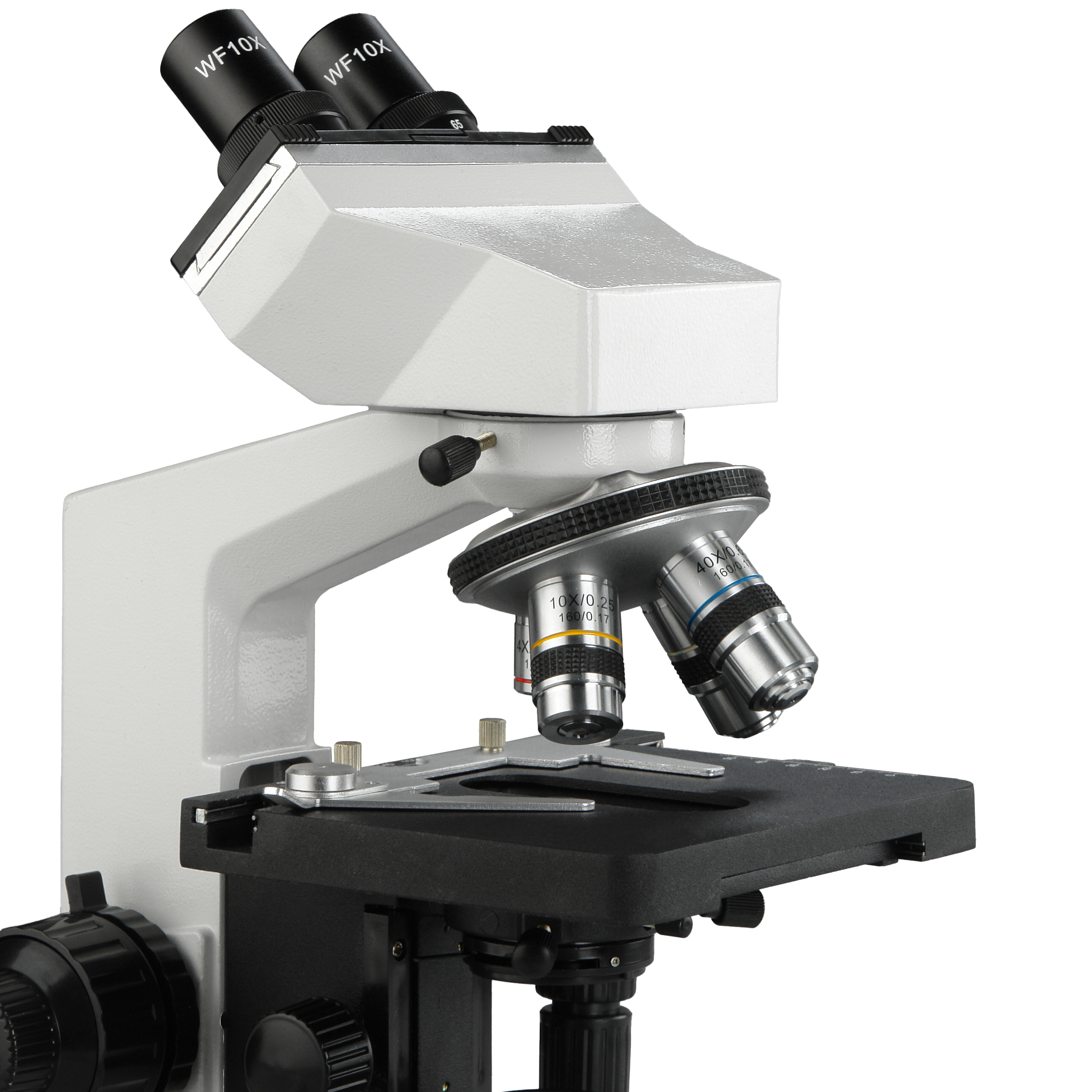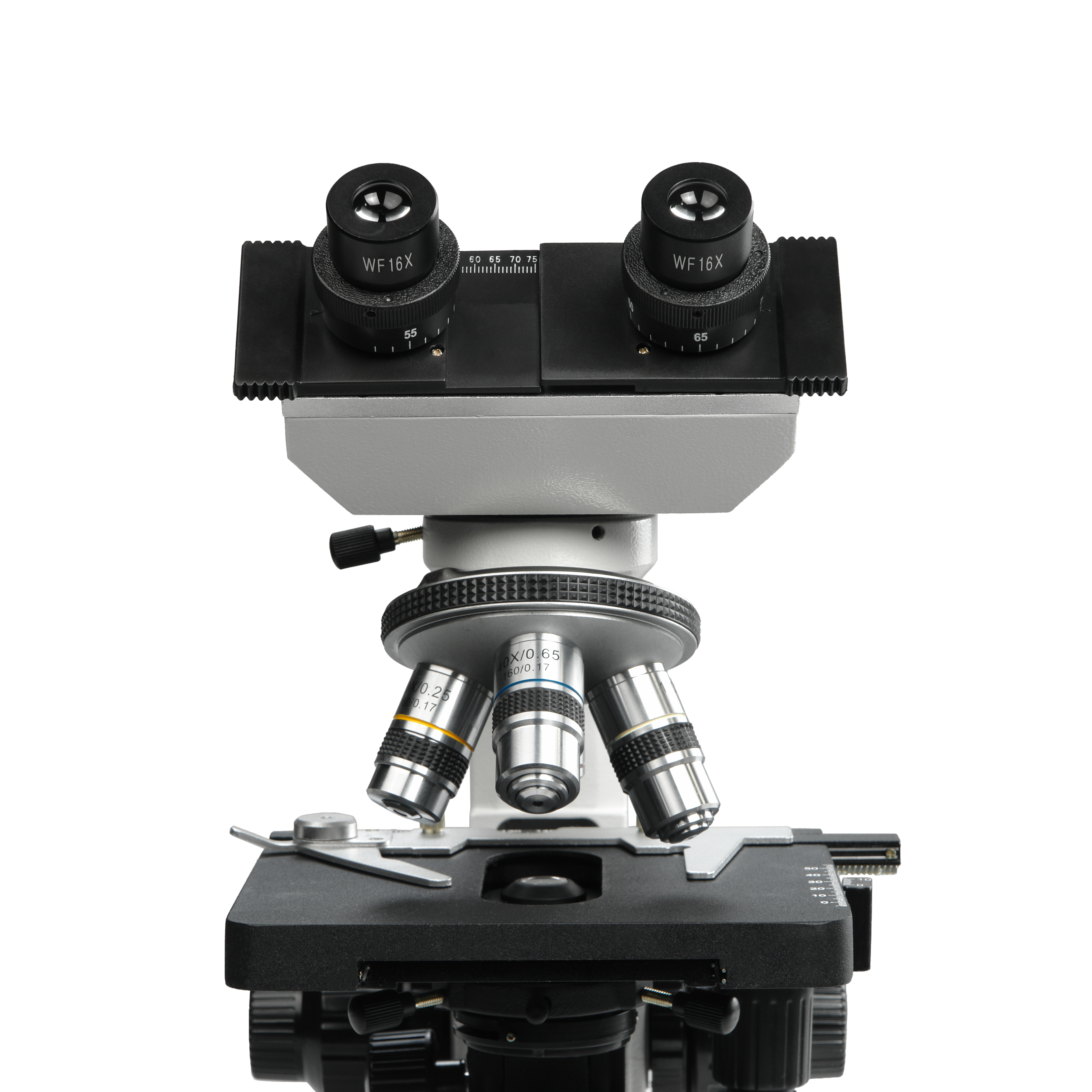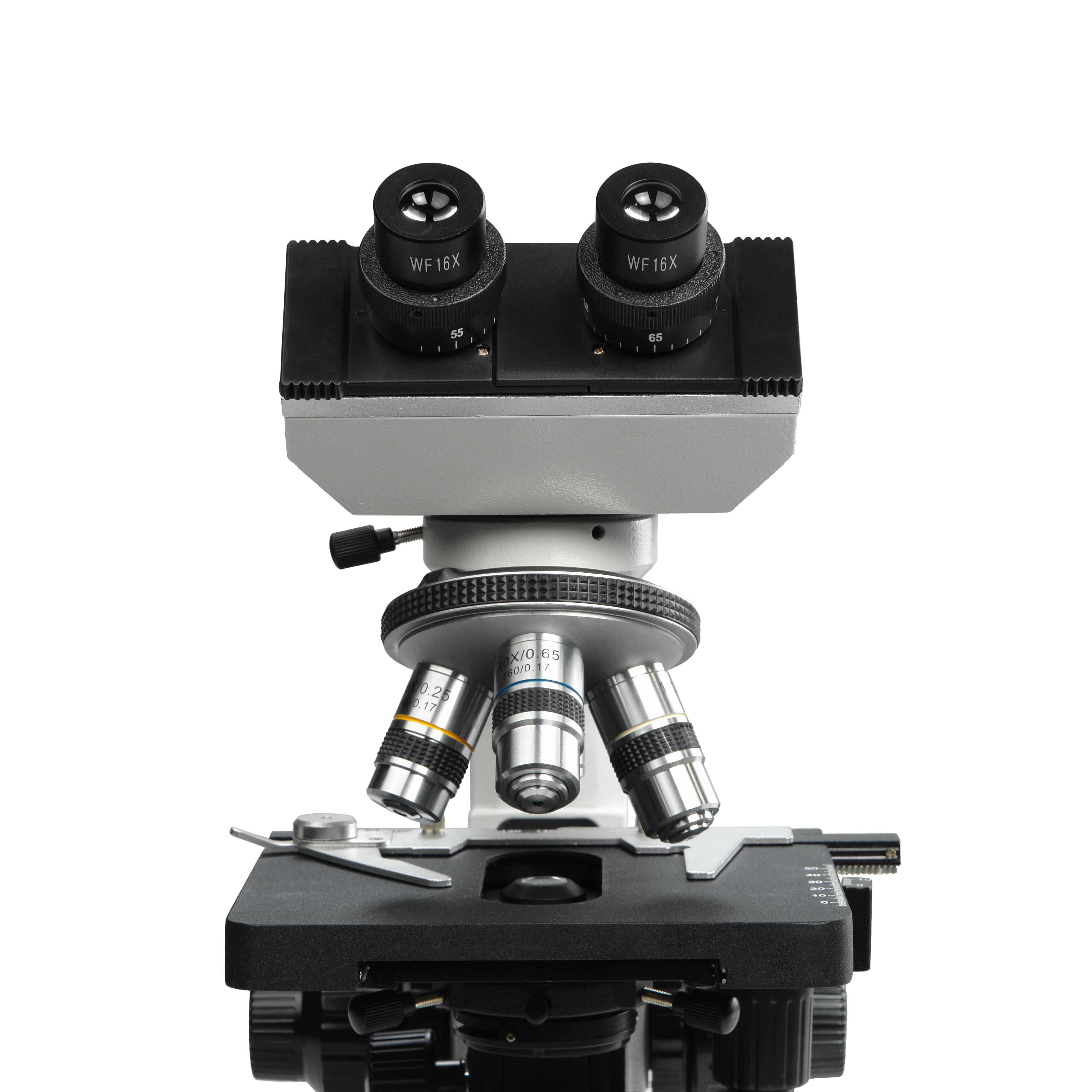 В комплект микроскопа входят окуляры широкого поля WF10х/18 и WF16х/15 с линейным размером поля зрения 18 мм и 15 мм соответственно. С окуляром 10х диапазон увеличений составляет от 40х до 1000х, с окуляром 16х – от 64х до 1600х.