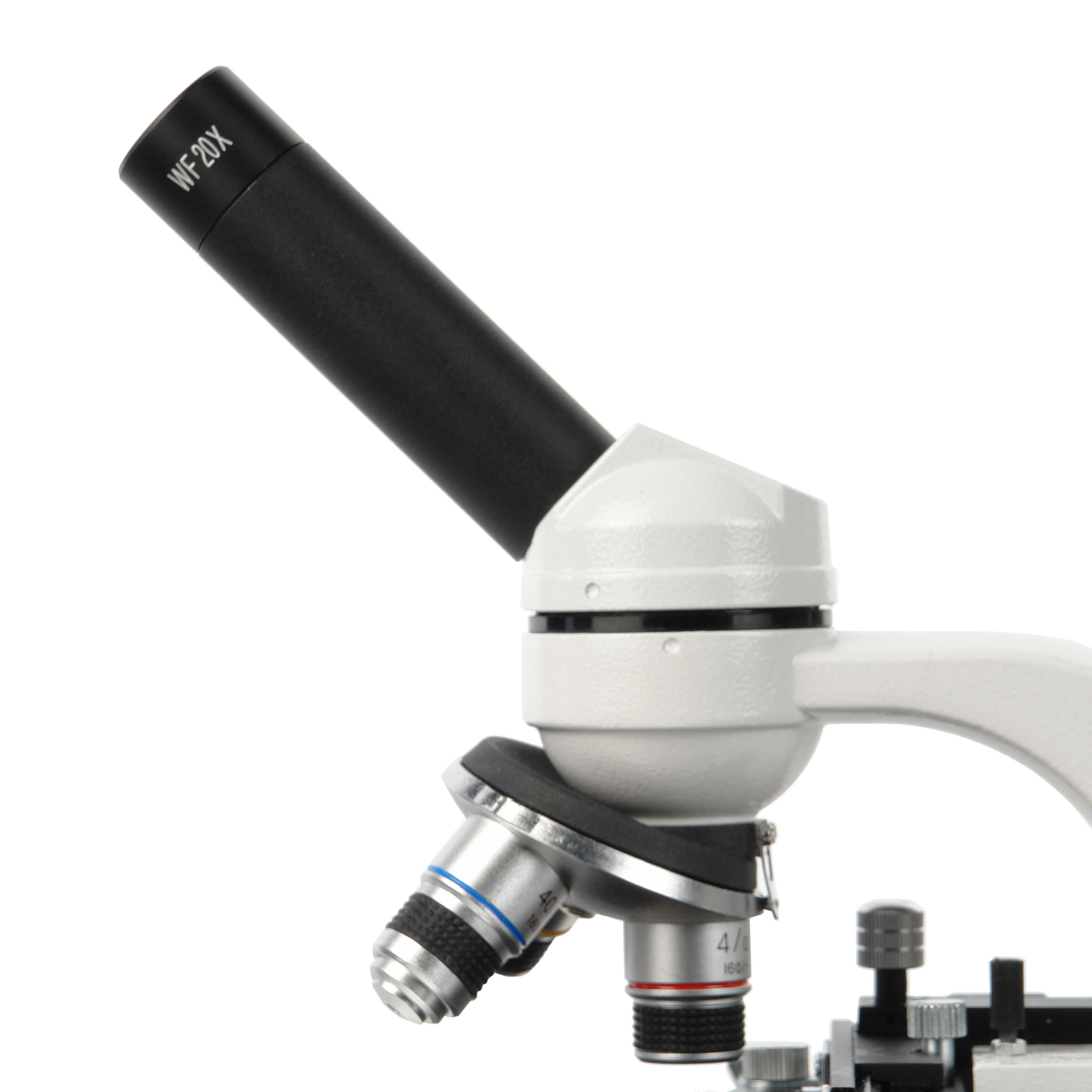 В комплект поставки микроскопа входят окуляры широкого поля WF10х/15 и 20х/11. При использовании окуляра 20х и объектива 40х достигается максимальное увеличение микроскопа 800х. С микроскопом могут быть использованы приобретаемые различные дополнительно окуляры с посадочным диаметром 23,2 мм, например, окуляр 5х/18 или окуляр 10x/18 с сеткой.