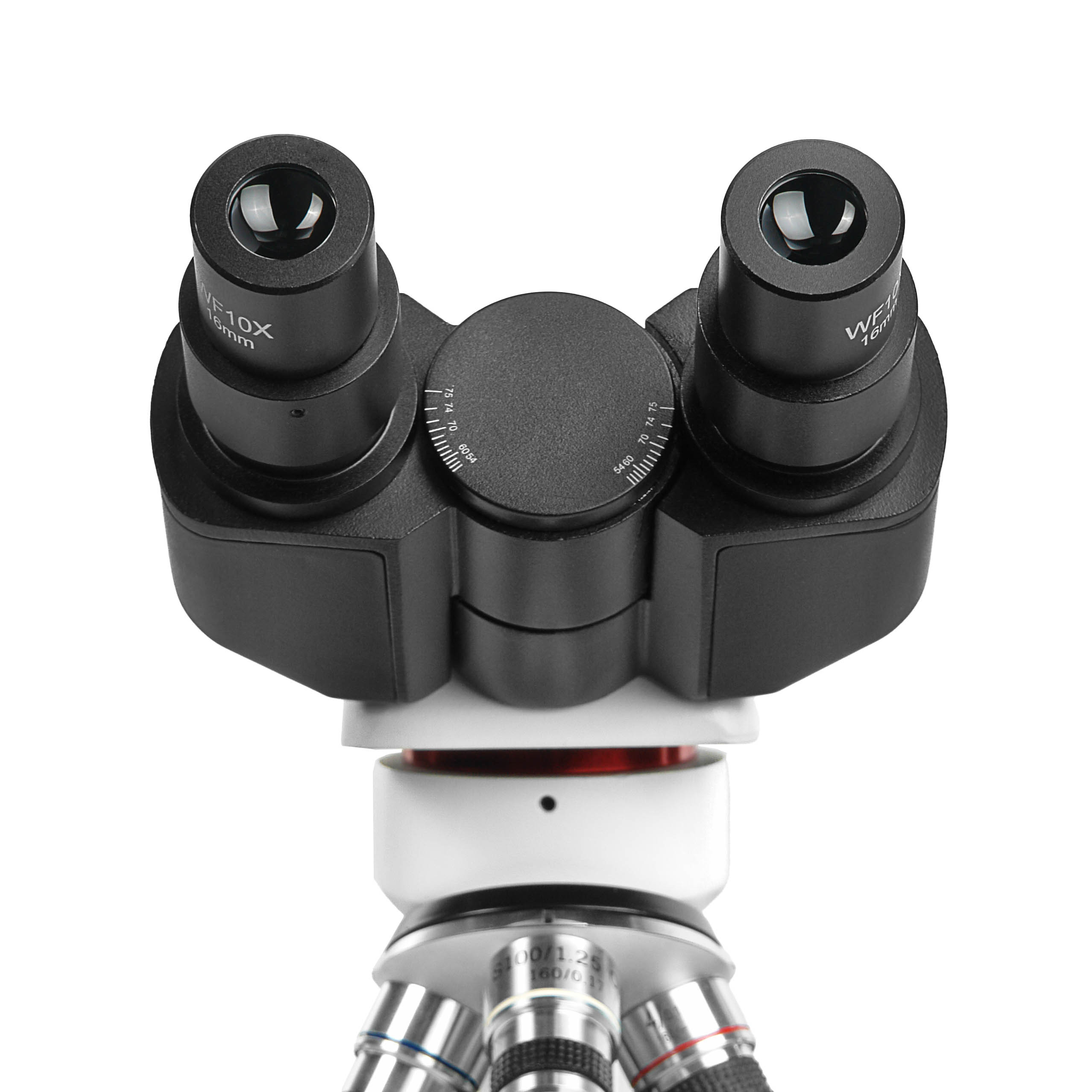 Посадочный диаметр тубуса составляет 23.2 мм, что подходит для большинства окулярных камер. Диоптрийная настройка левого тубуса при установленной камере используется для настройки точного соответствия фокусировки цифрового и оптического изображений.