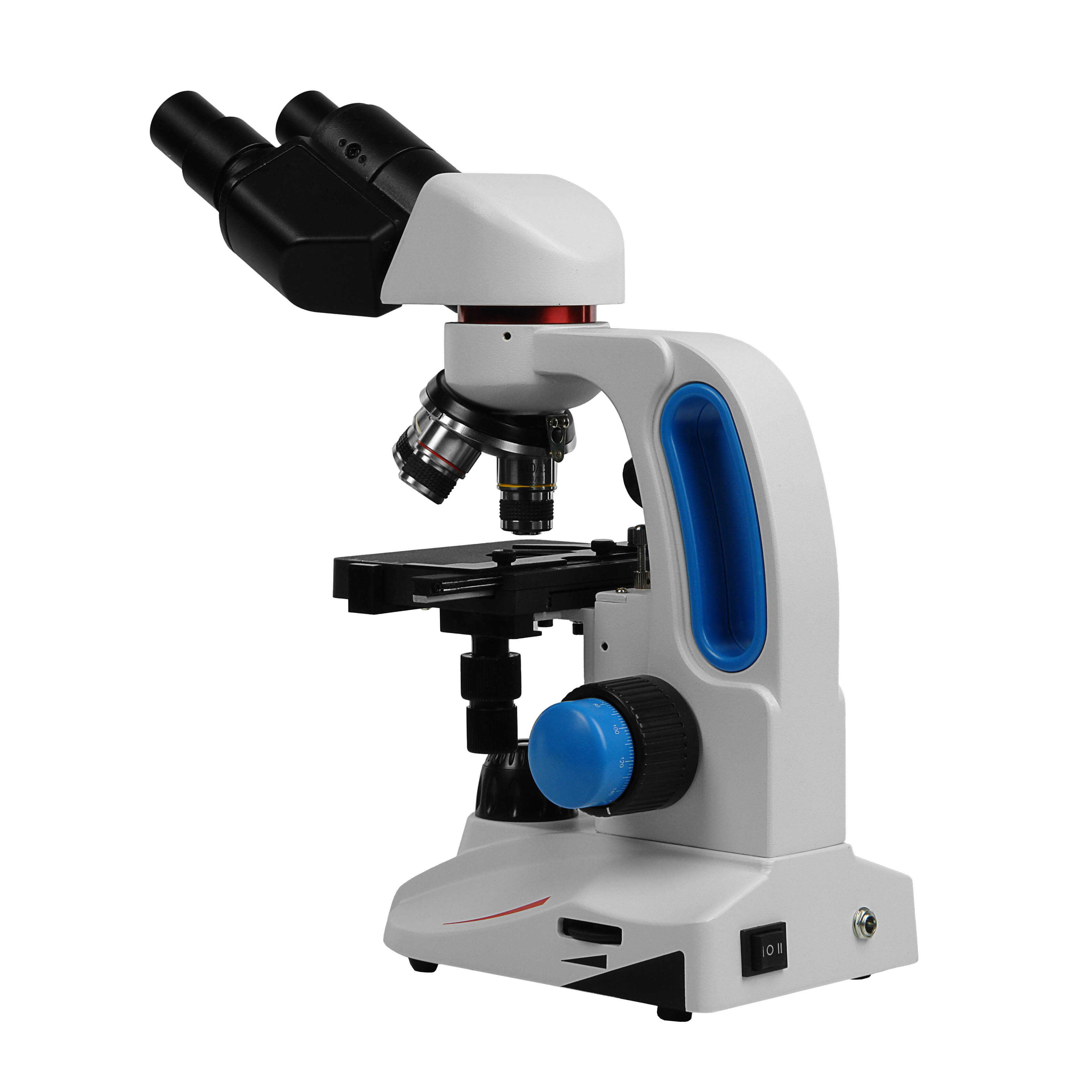 Осветитель проходящего света предназначен для исследования препаратов, пропускающих свет. Состоит из коллектора, светодиода белого спектра и конденсора. Упрощенная конденсорная конструкция осветителя особенно удобна для начинающих: конденсор не нуждается ни в центрировке, ни в регулировке диафрагмы, но при этом осветитель создает свет, позволяющий получать резкие изображения с высоким контрастом. Осветитель отраженного света используется для изучения образцов плохо или совсем не пропускающих свет. Этот осветитель эффективен только с объективами 4х и 10х.