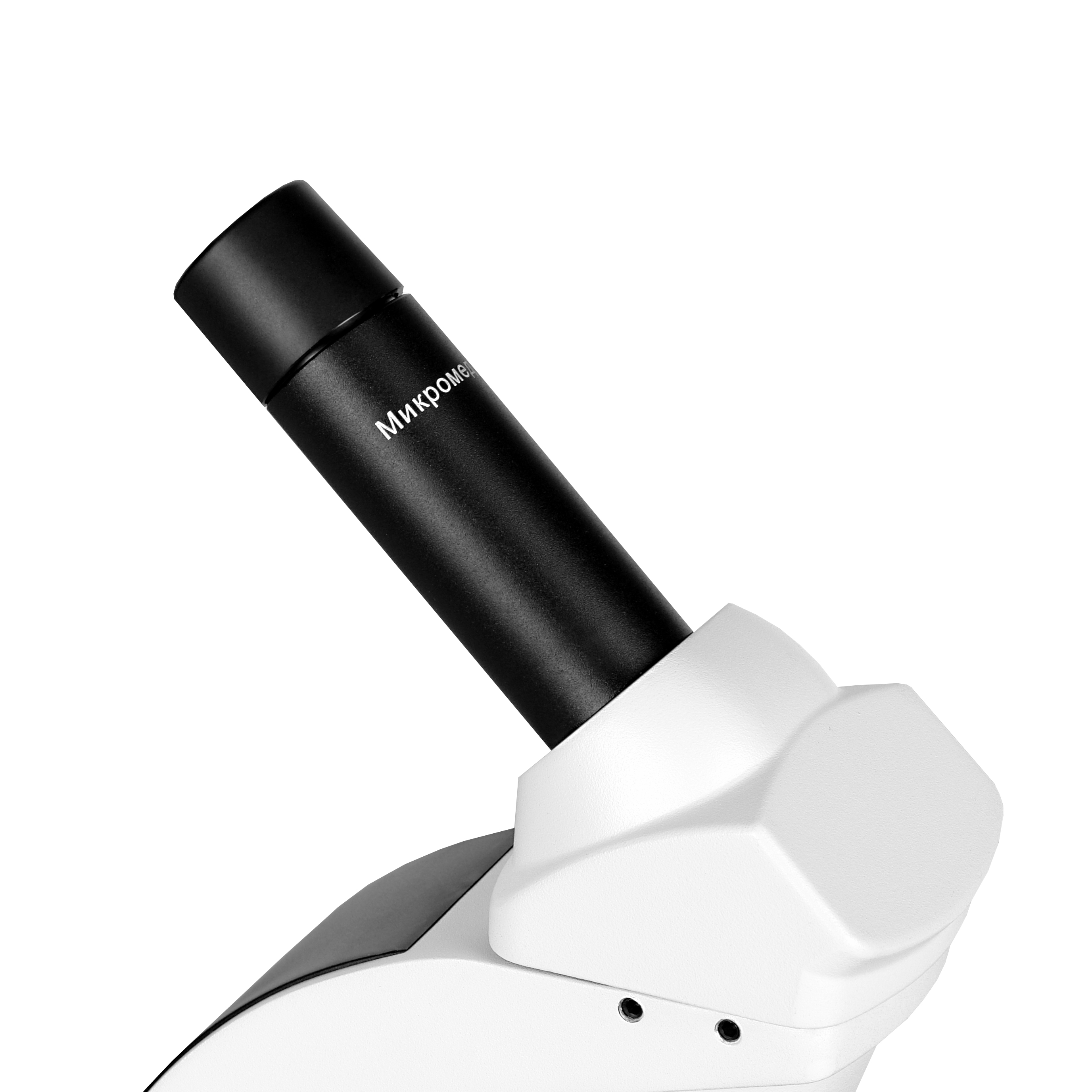 Микроскоп оснащен монокулярной визуальной насадкой, допускающей поворот вокруг оптической оси на 360°, что позволяет установить ее в удобное для работы положение. Поворотная конструкция позволяет настраивать рациональное положение окулярного тубуса при манипуляциях с исследуемым образцом, что особенно удобно в учебном процессе при наблюдении несколькими учащимися одновременно. Угол наклона окулярного тубуса составляет 45°.