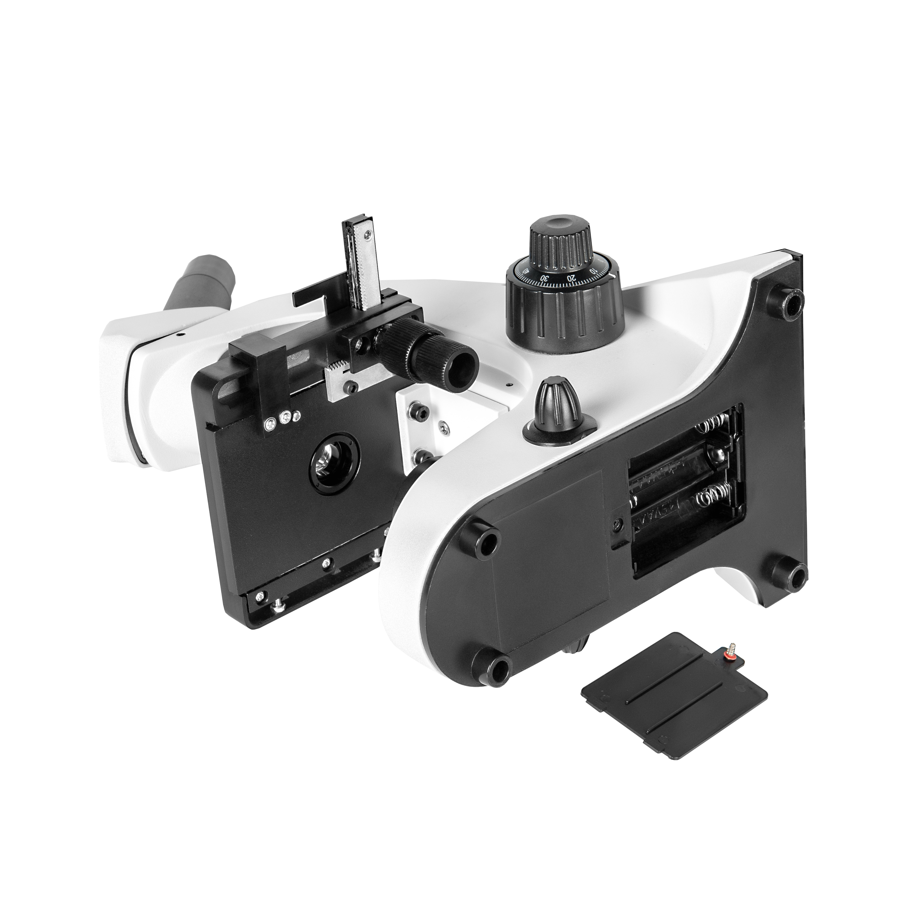Основание и штатив микроскопа изготовлены из алюминиевого сплава, все механические детали механизмов из металлов. Использованные в конструкции материалы в сочетании с точным изготовлением и прецизионной регулировкой гарантируют стабильность и точность настроек микроскопа, устойчивость конструкции к ударам и вибрациям и длительный срок безотказной работы.