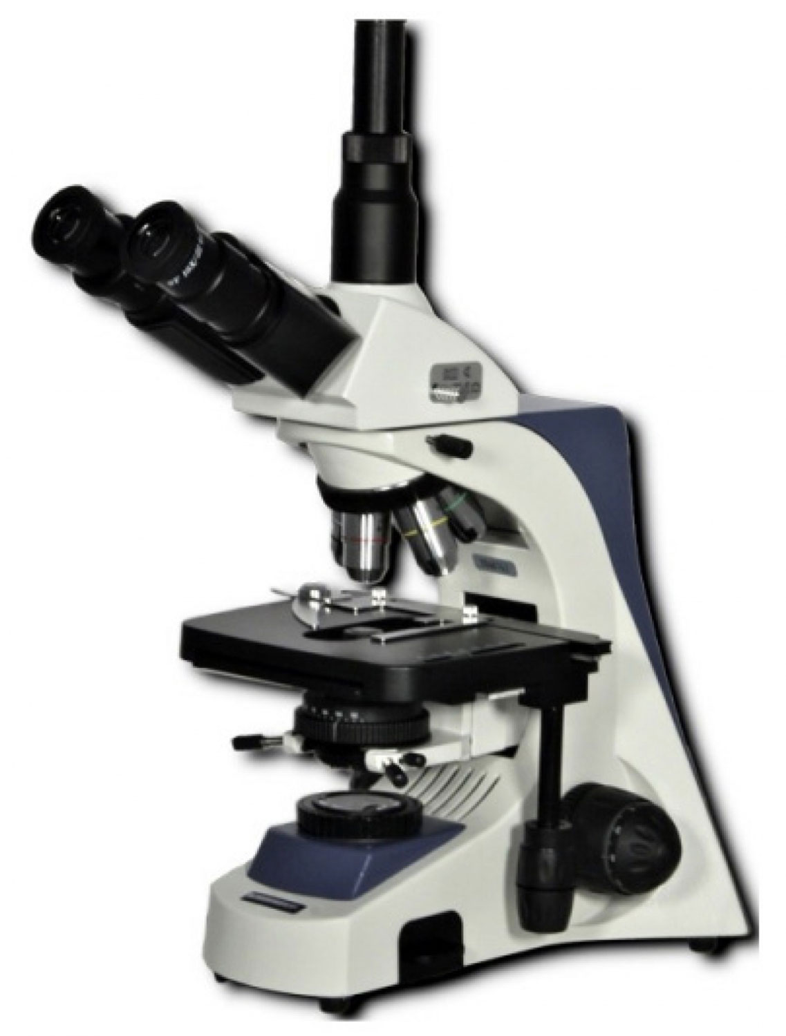 Прибор оснащен тринокулярной насадкой с наклоном бинокулярной части. Она удобна для длительной работы и позволяет вести наблюдения обоими глазами, при необходимости одновременно подключив к третьему окуляру цифровую камеру (нет в комплекте). Револьверное устройство микроскопа вмещает в себя 5 объективов, в базовой комплектации их 4. Диапазон увеличения составляет 40–1000 крат.