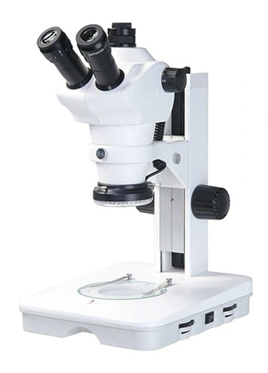 Планахроматический стереообъектив с зумом от 0,8 до 8 крат обеспечивает плавное увеличение изображения без потери качестве и без искажений. Настройка резкости осуществляется с помощью ручек точной и грубой фокусировки. Яркость светодиодной подсветки микроскопа плавно регулируется. Микроскоп имеет эргономичную модульную конструкцию, рассчитанную на длительную работу в комфортном положении.