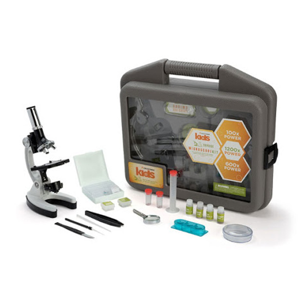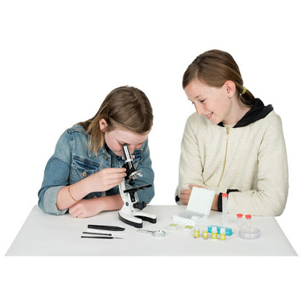 Вместе с микроскопом поставляется набор для лабораторных исследований: посуда, готовые препараты, чашка Петри, лупа кратностью 2x, инкубатор для выращивания рачков, безопасный для детей скальпель и прочие необходимые инструменты. Благодаря удобному комплектному кейсу ребенок в любой момент сможет взять набор с собой на занятие в школе или научном кружке.