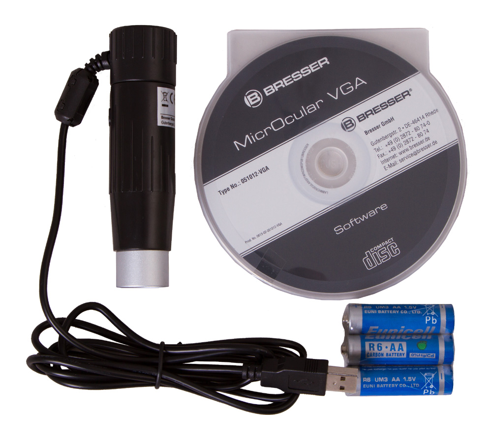 Микроскоп снабжен револьверным устройством на три объектива. Используя прилагающиеся оптические аксессуары, можно достичь максимального увеличения в 1024 крат. Кроме двух стандартных окуляров в комплекте идет видеоокуляр, с помощью которого можно выводить изображение исследуемого образца на экран компьютера, ноутбука или телевизора. Для работы USB-окуляра потребуется установить специальное программное обеспечение (в комплекте).