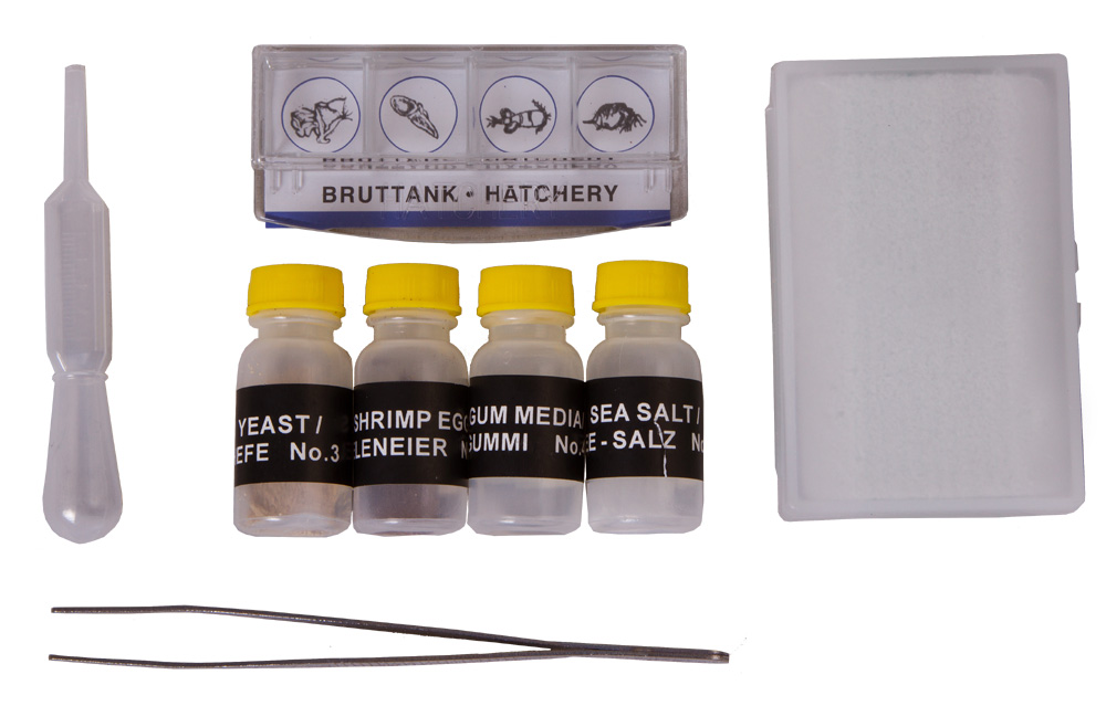 - Флаконы с препаратами: дрожжи, морская соль, артемия, смола (для изготовления препаратов)