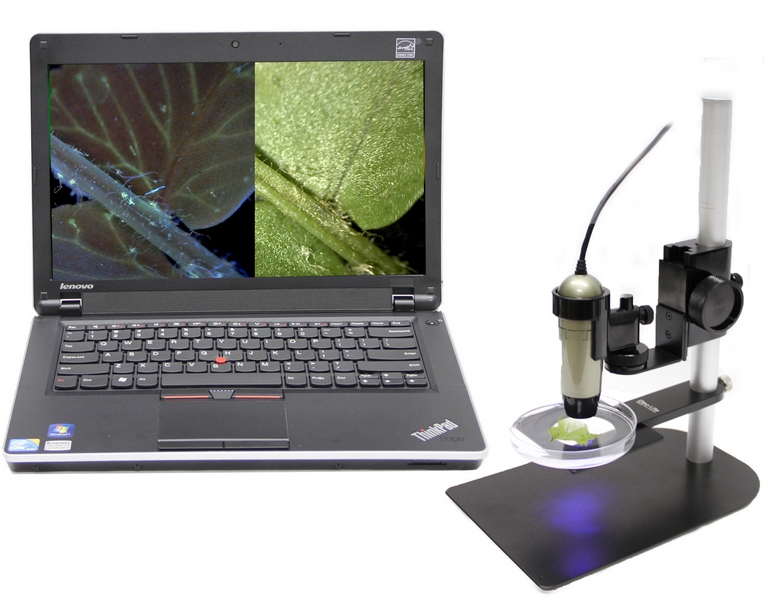Микроскоп работает от компьютера (для подключения используется стандартный USB-кабель). Встроенная цифровая камера 1,3 Мпикс передает увеличенное изображение препарата на монитор, поэтому в работе могут участвовать несколько человек одновременно. В комплект входит программное обеспечение, которое позволяет замерять объекты и обрабатывать изображения. Для сохранения результата исследований пользователь может выбрать наиболее удобный фото- или видеоформат.