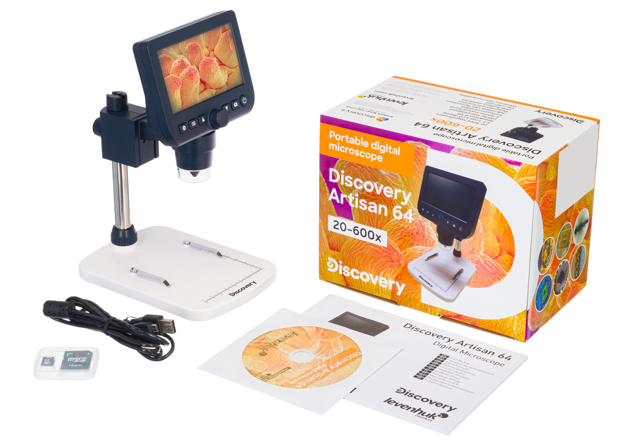 Цифровой микроскоп Discovery Artisan 64 удобен в работе, так как у него есть встроенный ЖК-экран, на который выводится изображение с объектива. Благодаря этому микроскоп необязательно подключать к компьютеру, хотя это и возможно – он совместим с устройствами, работающими на Windows и Mac OS (подключение осуществляется через кабель USB). Сферы применения обширны: ремонт мелкой техники, пайка микросхем, изучение металлов, заточка лезвий ножей, проверка подлинности старинных монет, реставрация предметов искусства и многое другое. Так как микроскоп снабжен верхней подсветкой, с его помощью можно изучать только непрозрачные объекты.