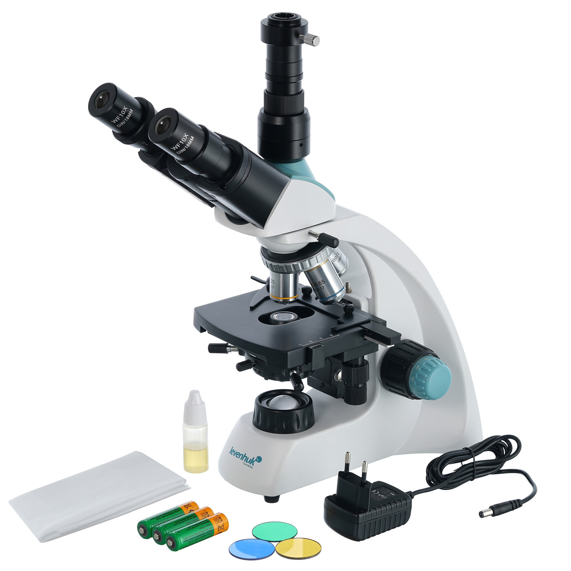 Микроскоп Levenhuk D400T совместим с цифровыми камерами Levenhuk (камеры приобретаются отдельно). Камеры Levenhuk устанавливаются в окулярную трубку вместо окуляра.