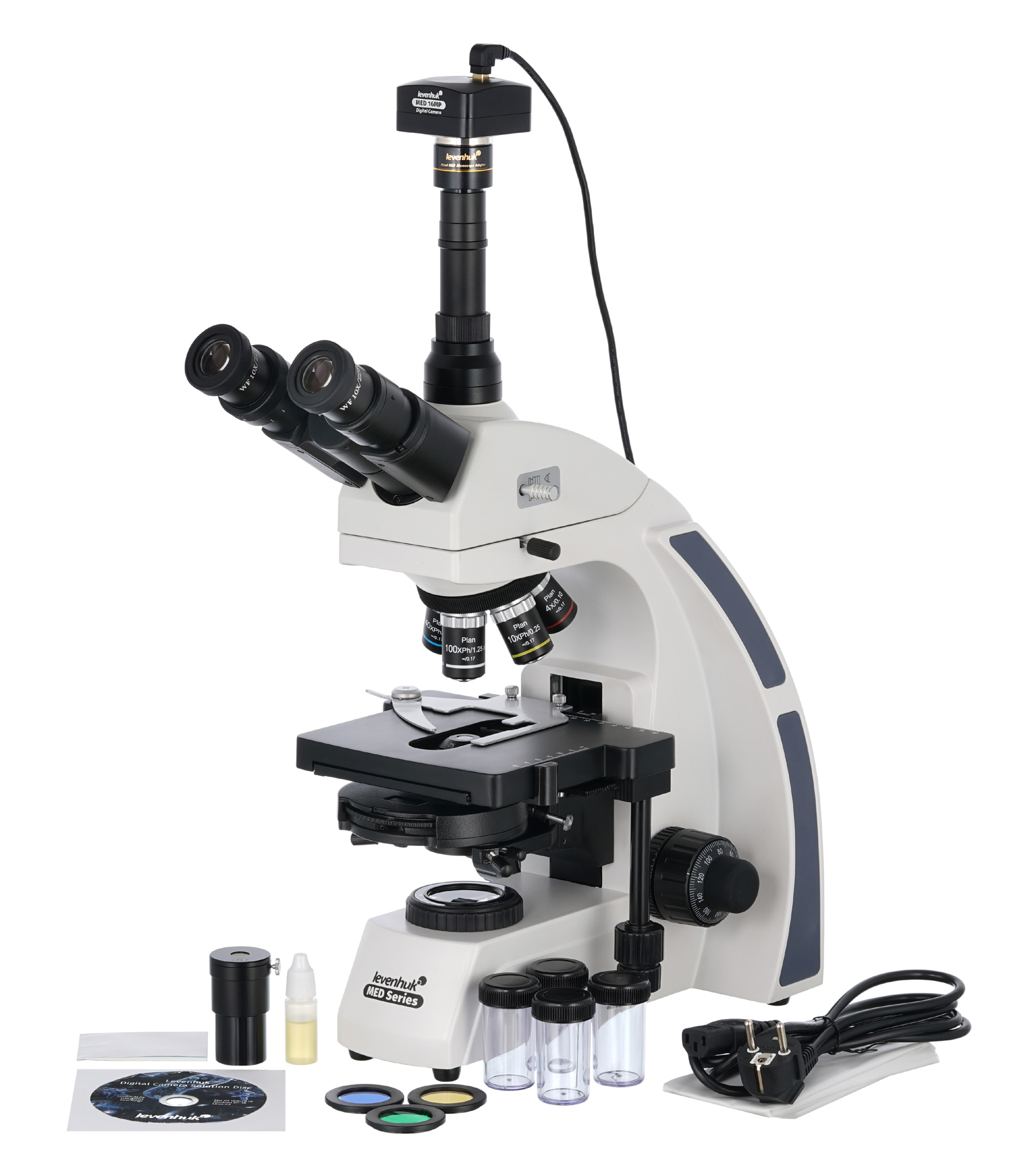 Тринокулярный микроскоп Levenhuk MED D45T комплектуется 16-мегапиксельной цифровой камерой, которая позволяет делать фотографии и записывать видеоролики в высоком разрешении. Микроскоп подходит для наблюдений методом фазового контраста, а также светлопольным и темнопольным методами. Он станет отличным приобретением для клинико-диагностического центра, биохимической или микробиологической лаборатории. В микроскопе можно настраивать освещение по методу Келера, все наблюдения ведутся на увеличении от 40 до 1000 крат.