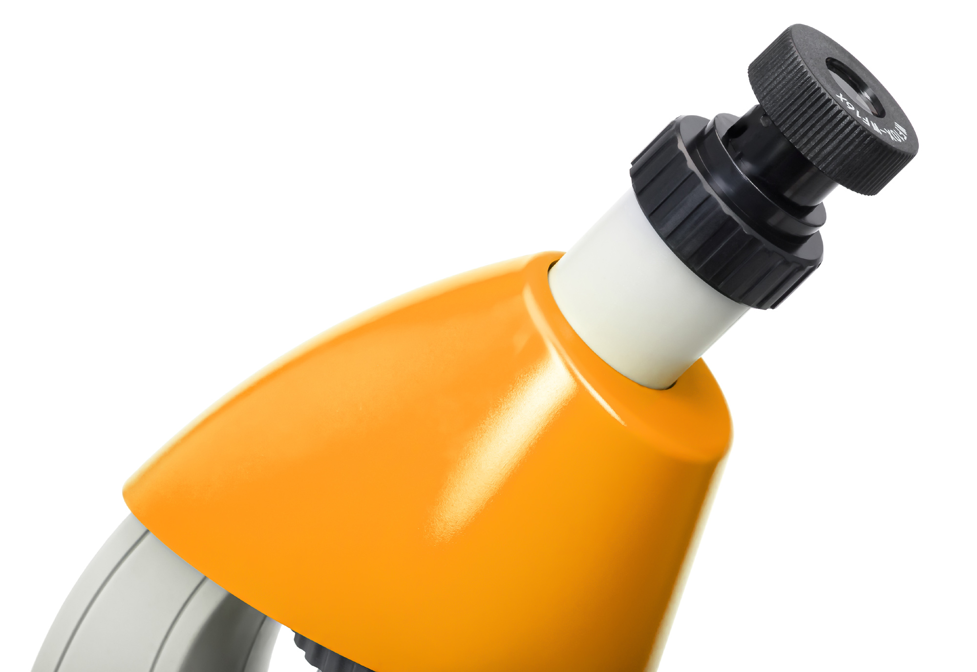 В микроскопе используется монокулярная насадка с несъемным окуляром. Она имеет небольшой наклон в 45°, что сильно упрощает длительную работу с микропрепаратами. Окуляр двухпозиционный, т. е. в одном положении он дает 10-кратное увеличение, в другом – 16-кратное. В револьверном устройстве находятся три объектива кратностью 4х, 10х и 40х. Общий диапазон увеличения микроскопа составляет от 40 до 640 крат. Этой кратности вполне хватает для ознакомительных наблюдений, а ручки грубой фокусировки помогают получить наиболее четкое изображение.