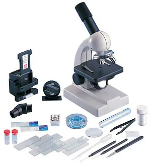 - В комплекте инструменты, микропрепараты и посуда для научных опытов