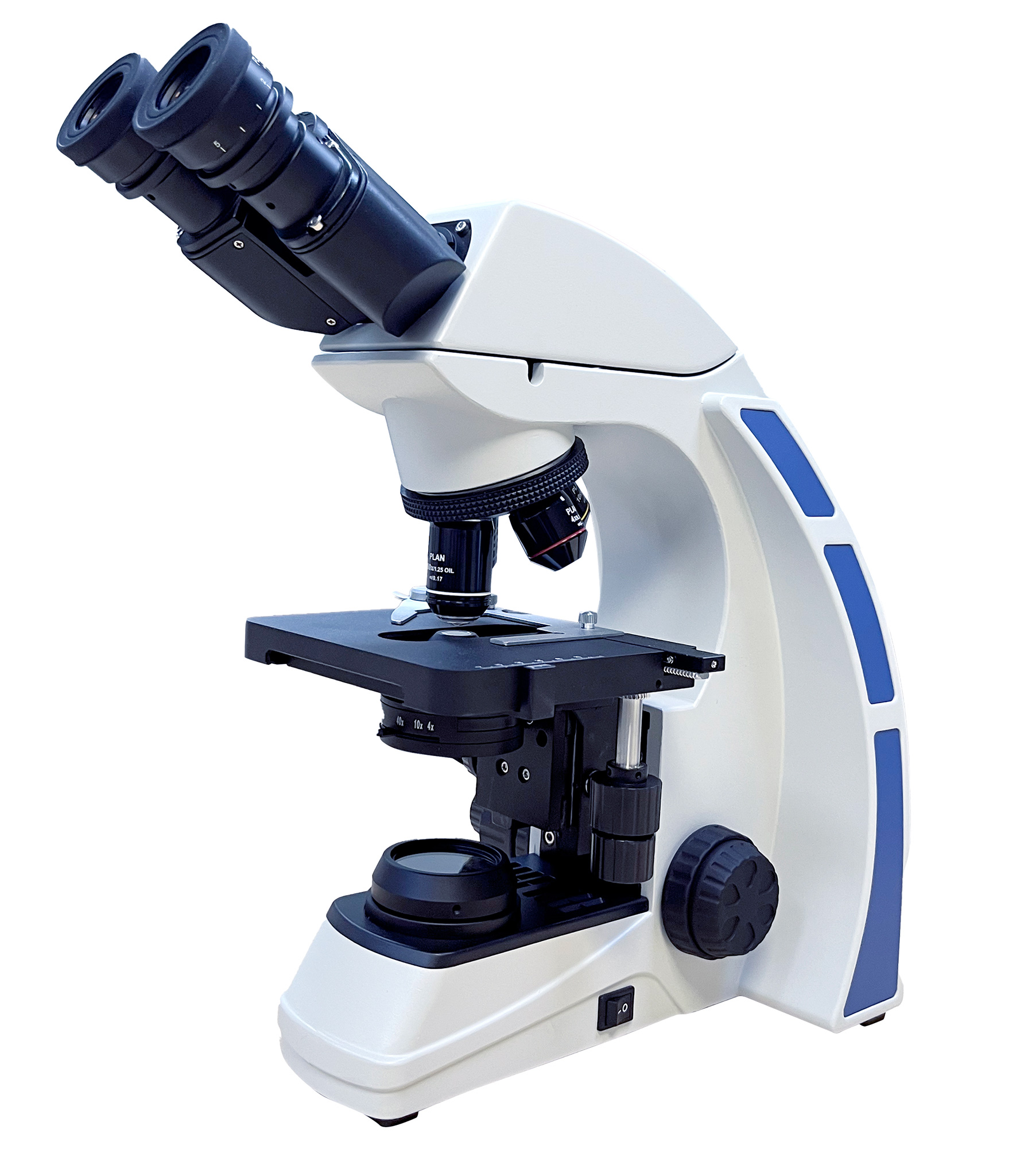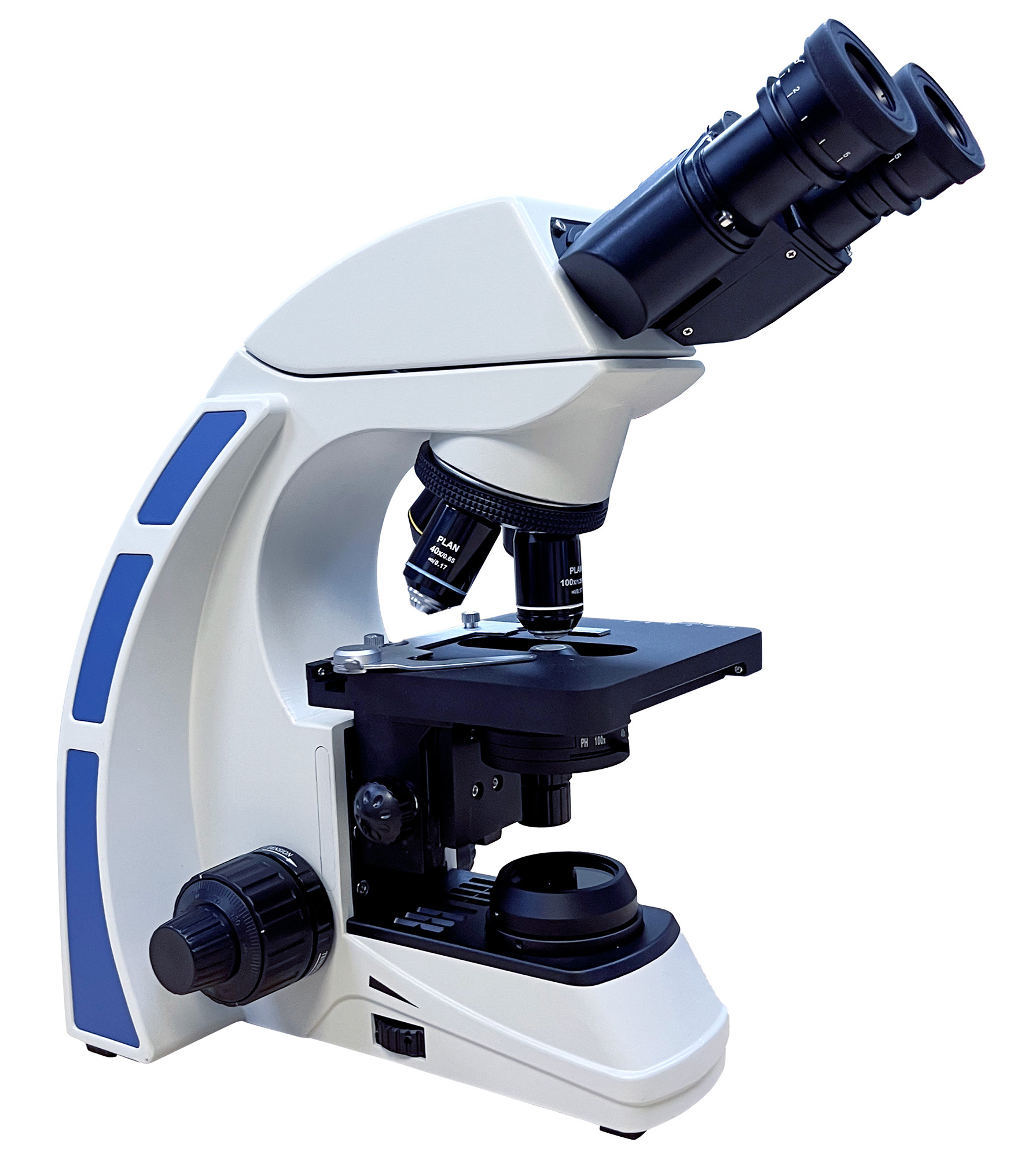 На предметном столике находится препаратоводитель, сам столик можно перемещать вперед-назад и вправо-влево. Конденсор имеет стандартную апертуру 1,25 и дополнен слотом для установки темнопольной вставки. Ручки фокусировки находятся справа и слева на корпусе, настройка резкости выполняется как грубо, так и точно. Источник освещения рабочей области – 3-ваттный светодиод в нижней части микроскопа. Его яркость можно регулировать, питание – сеть переменного тока.