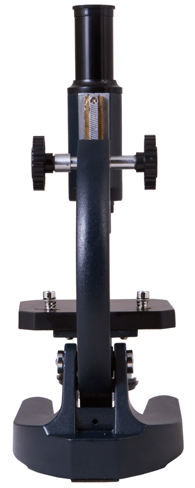 Микроскоп снабжен предметным столиком размерами 90х100 мм с держателями для микропрепаратов. Фокусировка осуществляется перемещением тубуса микроскопа вверх или вниз, причем большой запас хода фокусировочного механизма в большинстве случаев позволяет компенсировать дефекты зрения наблюдателя. Корпус микроскопа не содержит пластиковых деталей, он изготовлен полностью из металла и имеет массивное основание, предотвращающее случайное опрокидывание прибора.
