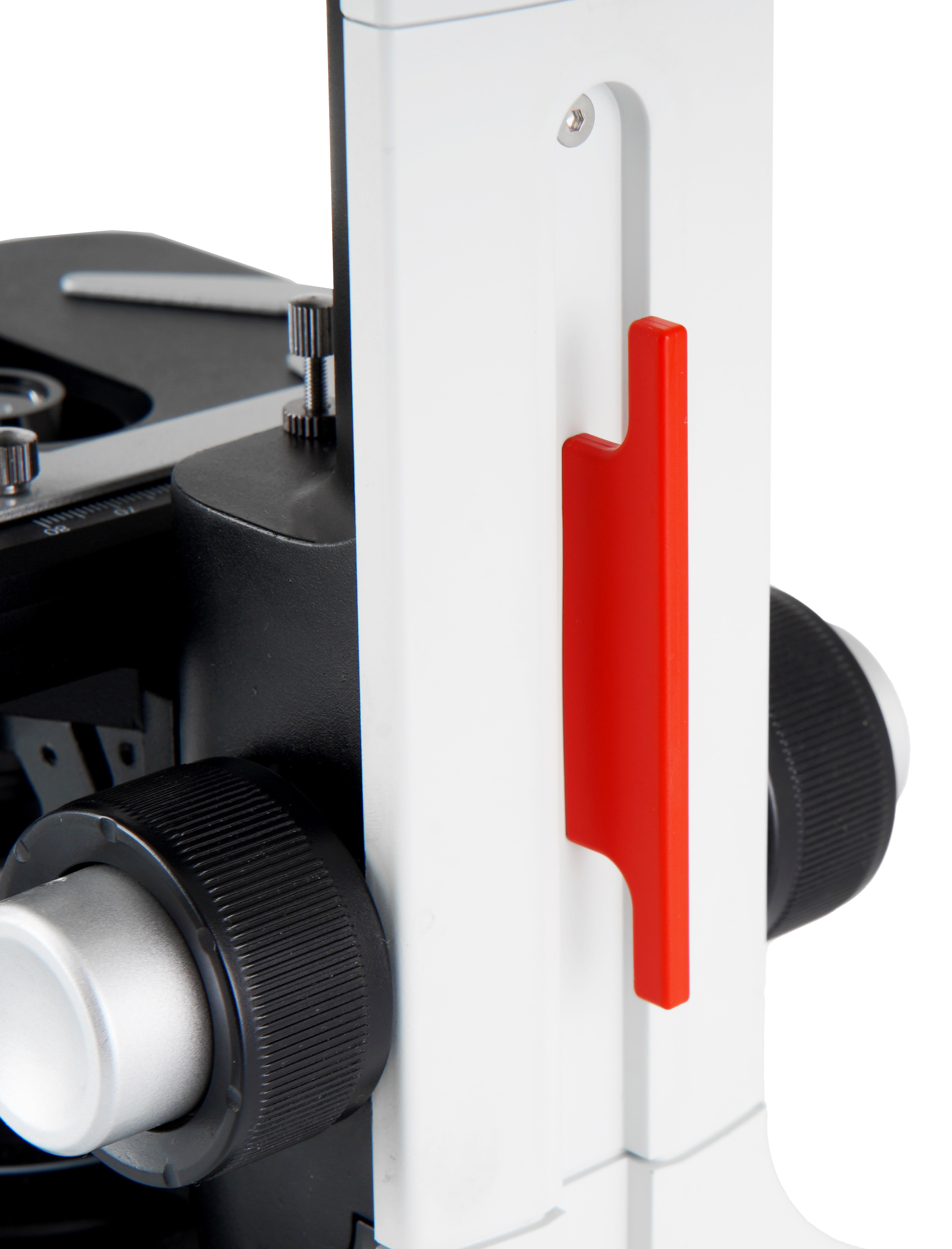 В устройстве микроскопа предусмотрен двухкоординатный механический предметный столик размером 110х120 мм, а прямо под ним расположен конденсор Аббе с ирисовой диафрагмой и специальными держателями для установки светофильтров. Микроскоп фокусируется при помощи рукояток тонким и грубым методом, используя стандартный коаксиальный механизм.