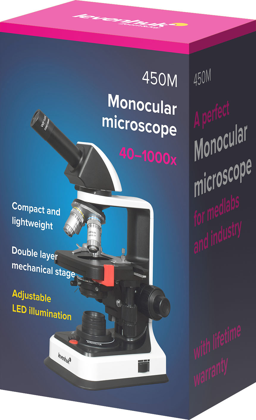 Биологический монокулярный микроскоп Levenhuk 450M используется для изучения прозрачных и полупрозрачных биологических образцов, дрожжей, бактерий, клеток и микроорганизмов в проходящем свете по методу светлого поля. Прибор пригодится специалистам, работающим в сфере медицины и в лабораториях, студентам, проходящим обучение в вузах, осуществляющим научно-исследовательскую деятельность.