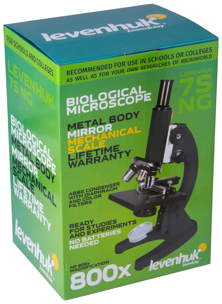 Микроскоп Levenhuk 7S NG – продвинутый микроскоп для начинающих исследователей микромира. Он станет прекрасным помощником в учебе и поможет провести множество научных опытов. При этом им несложно управлять – даже маленький ребенок сможет работать с ним самостоятельно. В том числе и благодаря безопасной конструкции микроскопа: корпус Levenhuk 7S NG изготовлен из ударопрочного металла, а подсветка не требует подключения к сети.