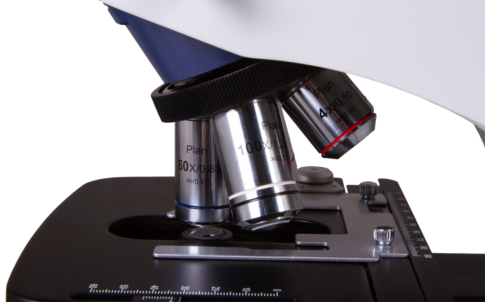 - Объективы планахроматические, скорректированные на бесконечность: 4x, 10x, 40xs, 60xs, 100xs (масляный) с антигрибковым покрытием