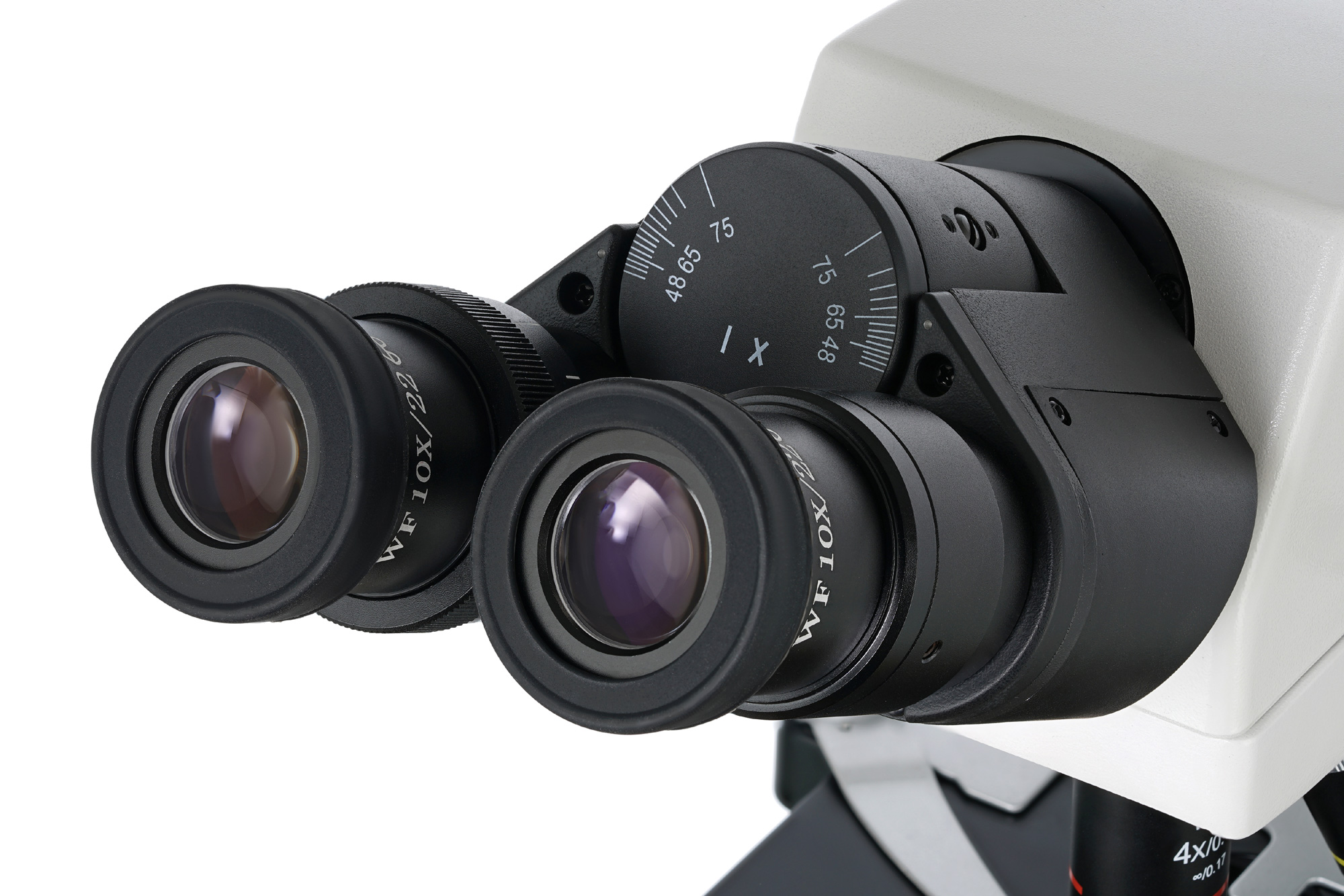 В микроскопе используется классическая бинокулярная насадка с наклоном 30°. Вести наблюдения можно сразу обоими глазами, к тому же исключается перенапряжение мышц шеи из-за длительной работы. Вращение насадки на 360° помогает при групповой работе – образец удобно изучать из любого положения. Комплектные окуляры дают 10-кратное увеличение, обеспечивают хороший обзор и позволяют корректировать диоптрии.