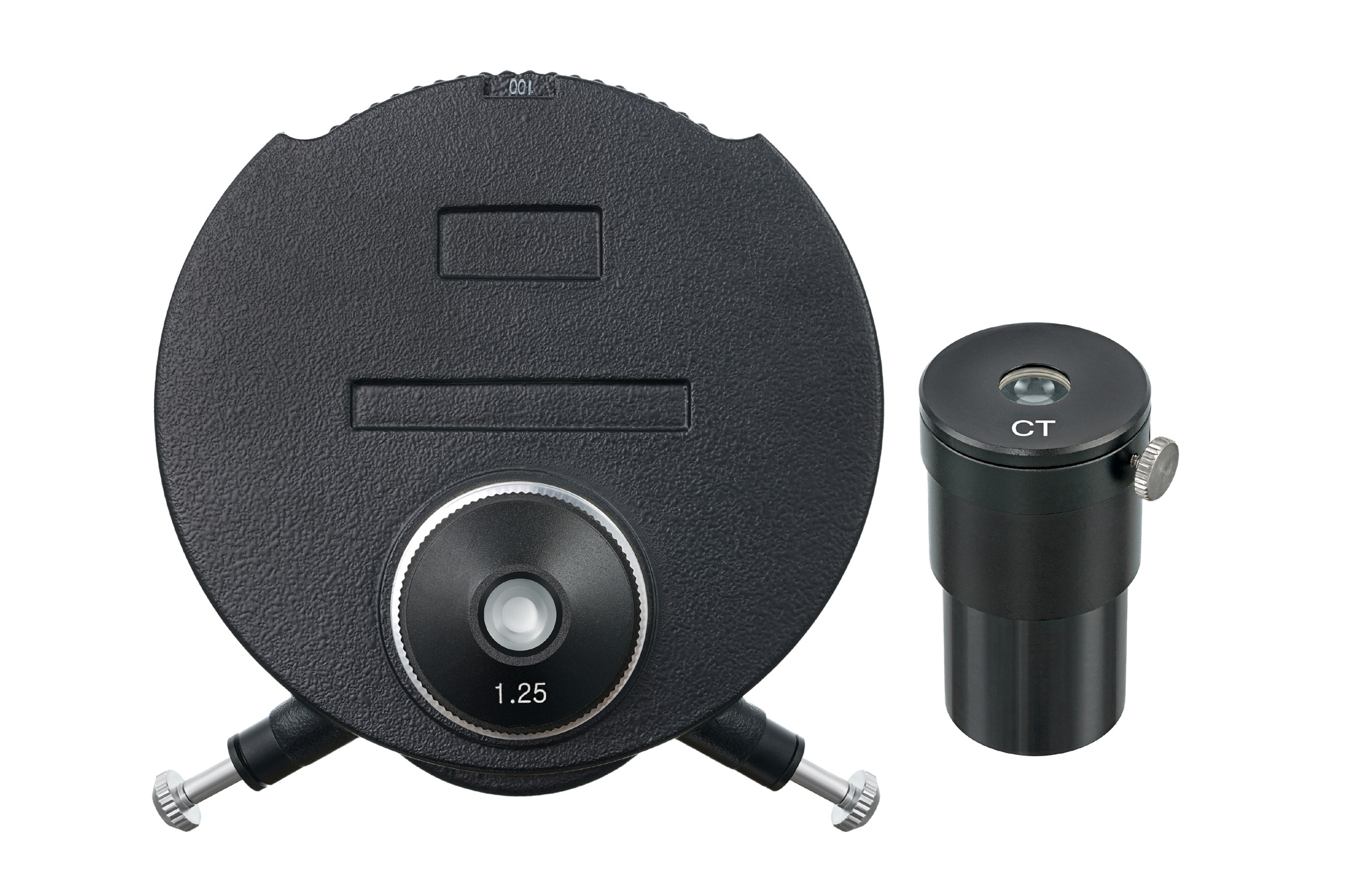 Револьверное устройство позволяет устанавливать до пяти объективов, но обратите внимание, что в комплект поставки включены только четыре объектива разной кратности. Это фазовые планахроматические объективы, выравнивающие поле зрения, улучшающие цветопередачу и уменьшающие оптические искажения. Два объектива с наибольшим увеличением имеют пружинящие оправы для защиты от случайных повреждений. Для масляной иммерсии используется 100-кратный объектив. Все оптические поверхности комплектных аксессуаров защищены антигрибковым покрытием.
