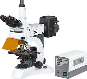 - Ртутная лампа 100 Вт для люминесценции и галогенная лампа 100 Вт для проходящего света для получения качественного изображения в разных режимах работы