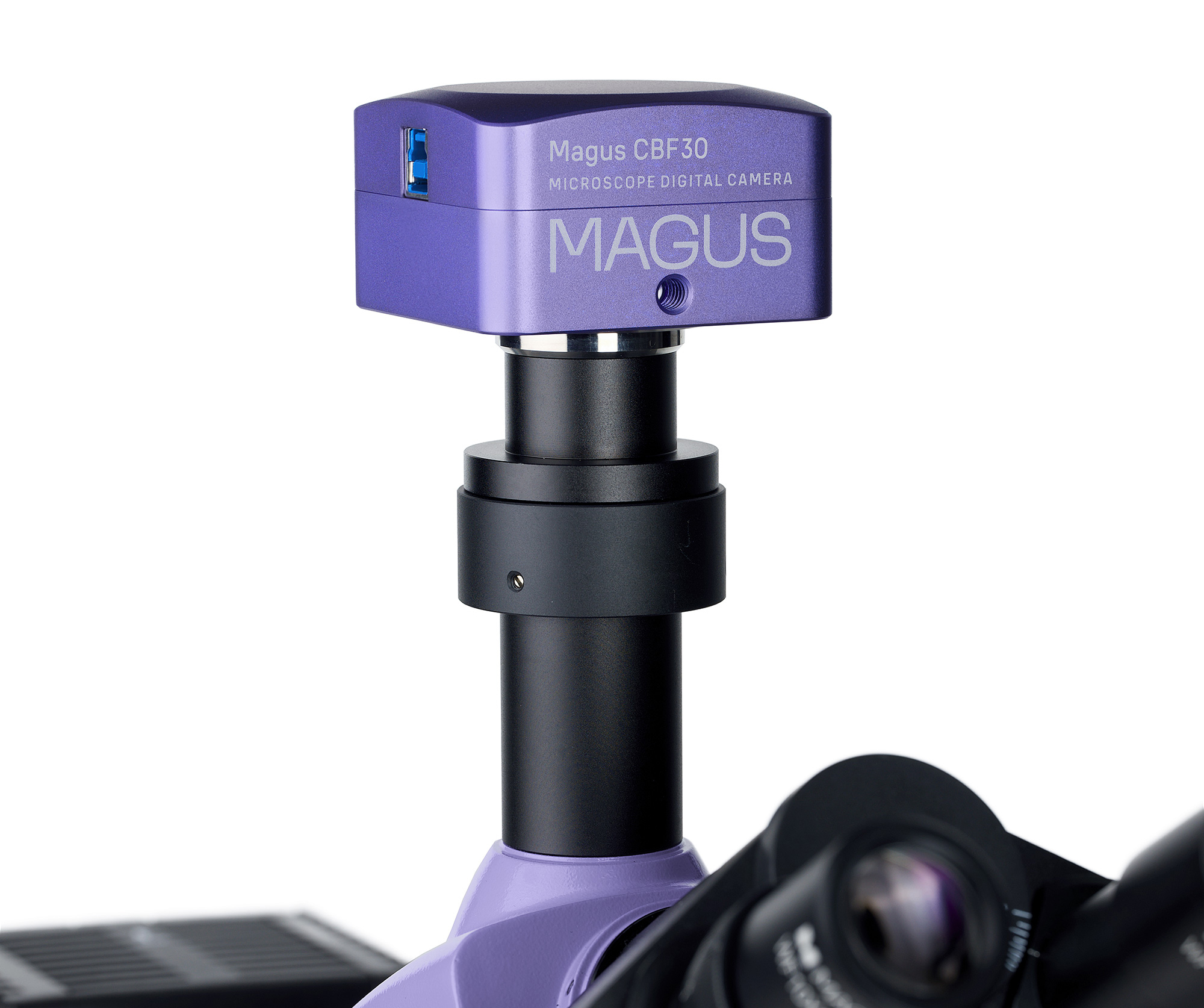 Цифровая камера MAGUS CBF30 позволяет делать фотографии и снимать видео с микроскопа, сохранять полученные графические материалы, организовывать компоненты, производить линейные и угловые измерения объектов (после корректного результата).