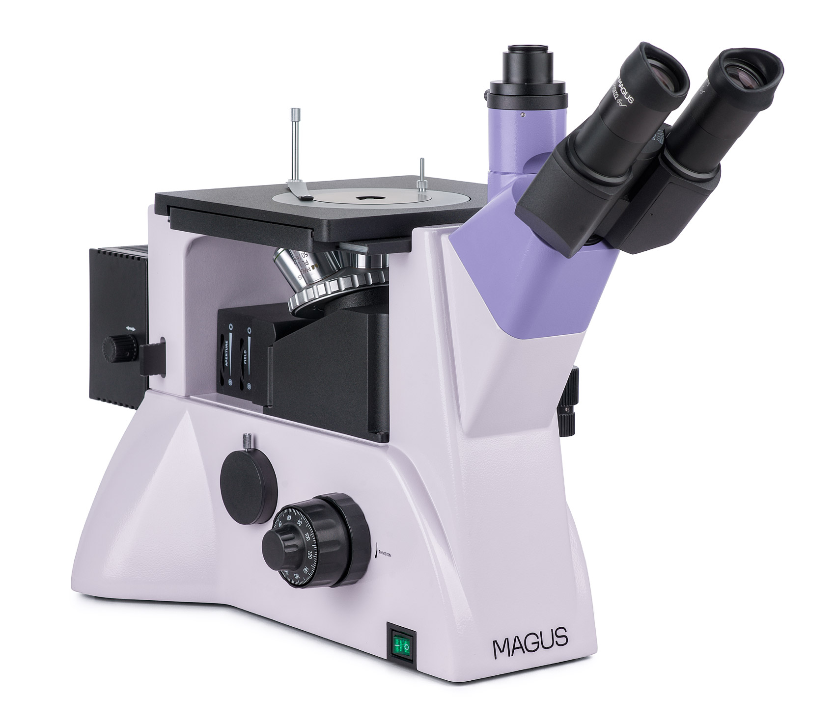 Инвертированный металлографический микроскоп MAGUS Metal V700 предназначен для изучения в отраженном свете микроструктур металлов, сплавов и полупроводников. Предметный столик рассчитан на габаритные объекты массой до 2 кг, причем гладкой должна быть только одна поверхность – приложите ее вниз к револьверному устройству. Остальная часть объекта может быть необработанной и иметь любую форму. Микроскоп используется для исследований в светлом поле и в поляризованном свете, имеет два независимых канала визуализации и подходит для решения задач широкого круга в лаборатории и на производстве.