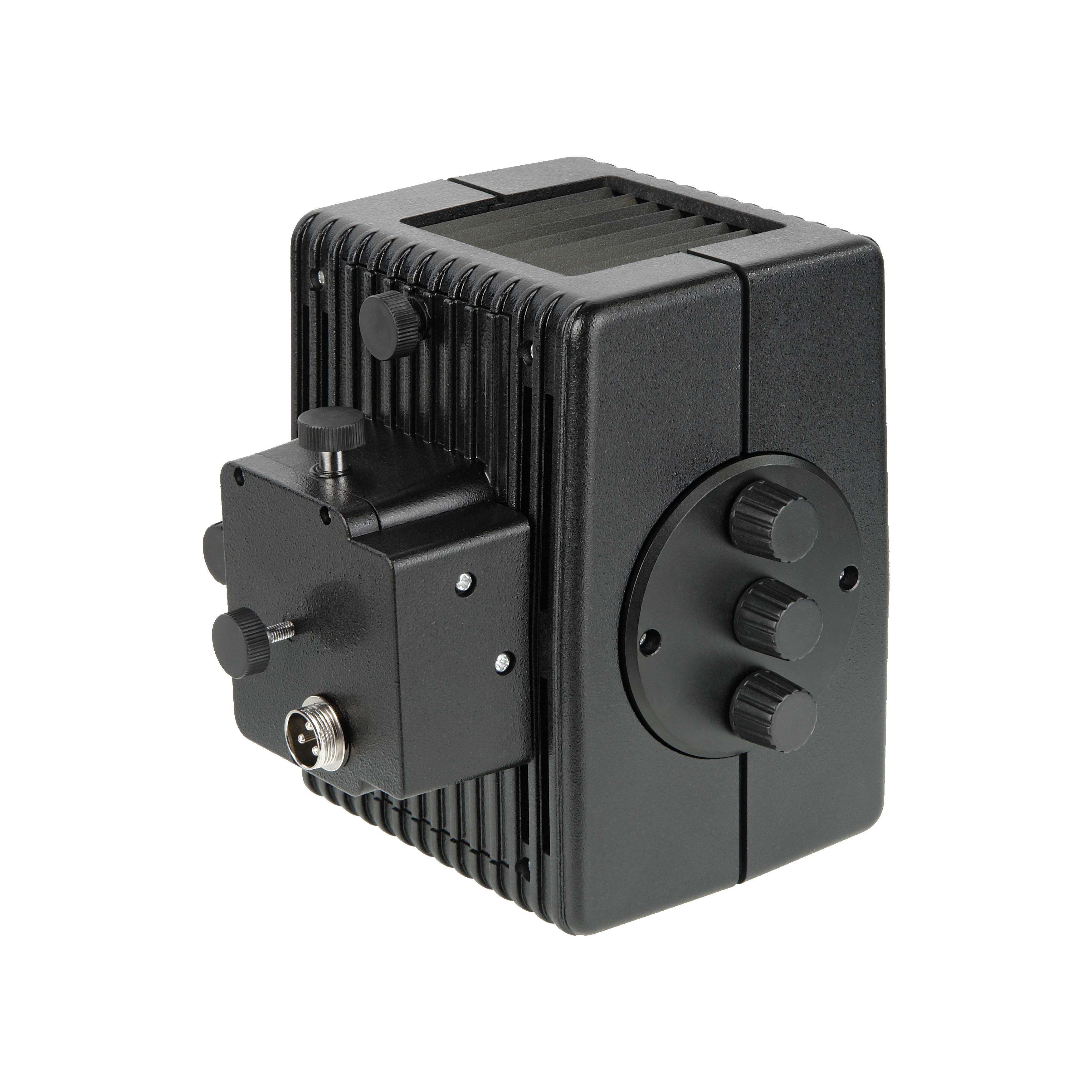 В базовый комплект микроскопа Микромед 3 ЛЮМ входит четыре объектива с планахроматической коррекцией предназначенных для работы как в обыкновенном свете, так и в свете люминесценции – 4x/0.1, 10x/0.25, 40x/0.65 и объектив масляной иммерсии 100x/1.25. Объективы 40x/0.65 и 100x/1.25 имеют оправы с подпружиненными оптическими блоками, что препятствует повреждению оптики объектива и изучаемого образца. Благодаря исправленной кривизне поля и сферической аберрации, исследователь может наблюдать плоское изображение без искажений по краям с высокой резкостью по всему полю. В сочетании с исправленным хроматизмом, это обеспечивает высокую информативность, комфорт при наблюдении и отличное качество записываемых изображений. Все объективы парфокальны, поэтому при смене увеличений не теряется наводка на резкость. Объективы микроскопа установлены на револьверном устройстве, рассчитанном на 5 объективов. Это позволяет наблюдателю быстро переходить к исследованиям с различными увеличениями.