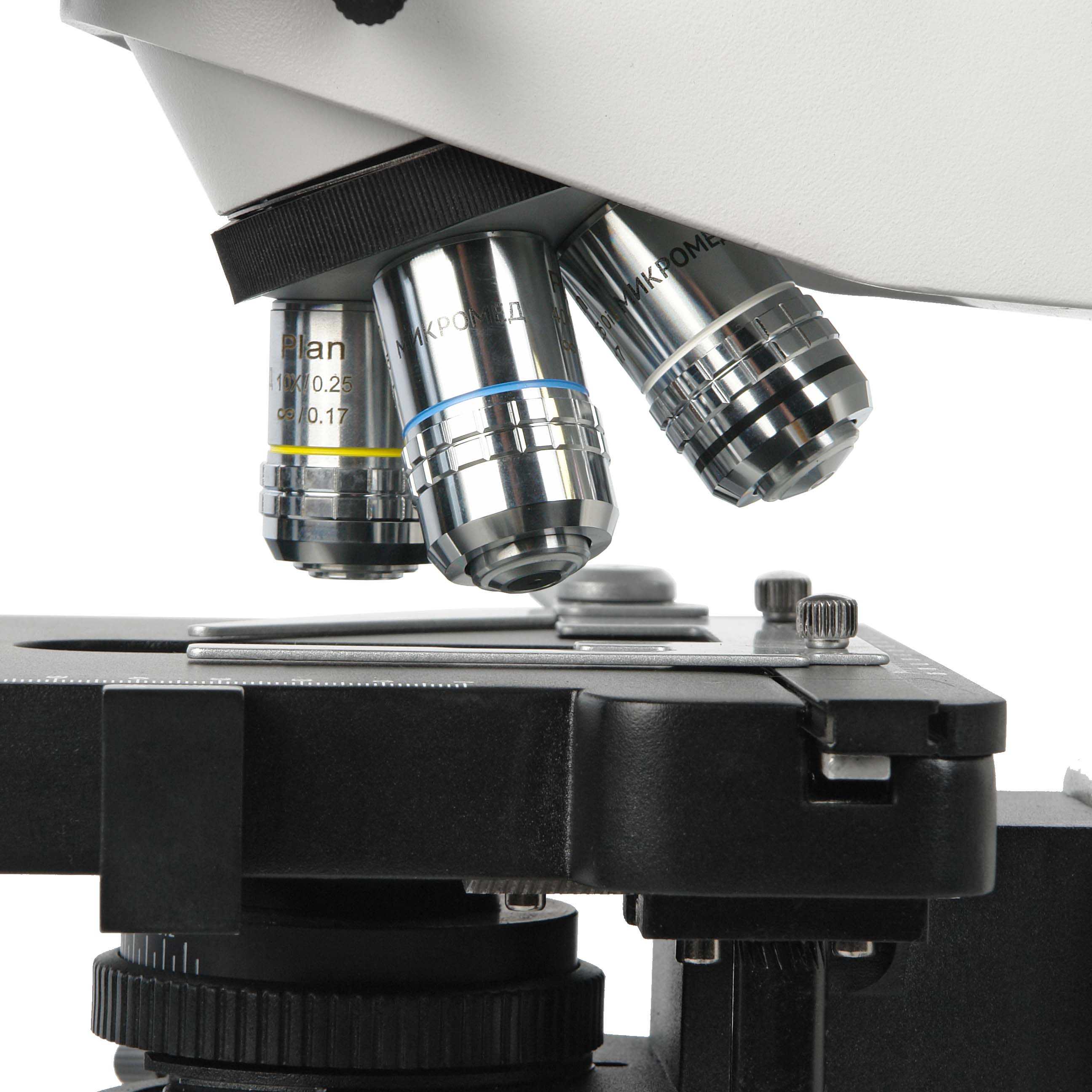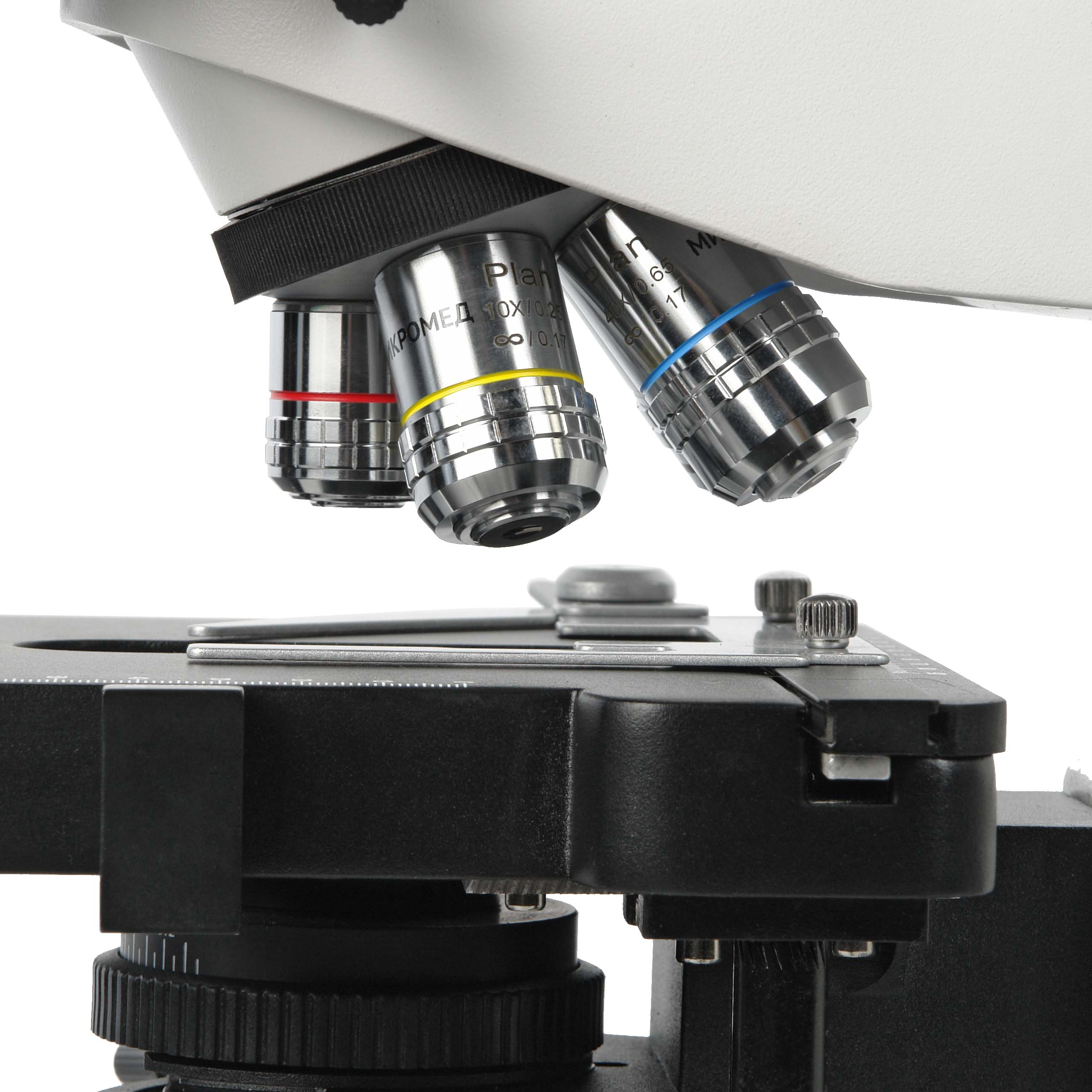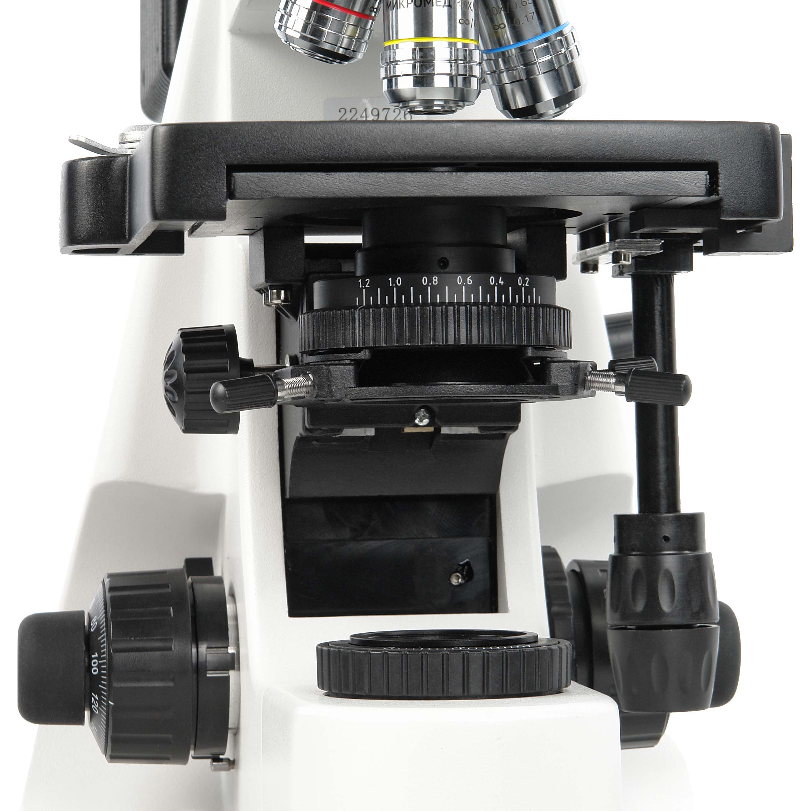 Все оптические детали микроскопа изготовлены из оптических стекол высокого класса и имеют многослойное просветляющее покрытие поверхностей. Микроскоп входит в линейку исследовательских микроскопов Микромед, отличающихся высоким качеством оптических и механических деталей, точной сборкой и прецизионной настройкой каждого микроскопа.