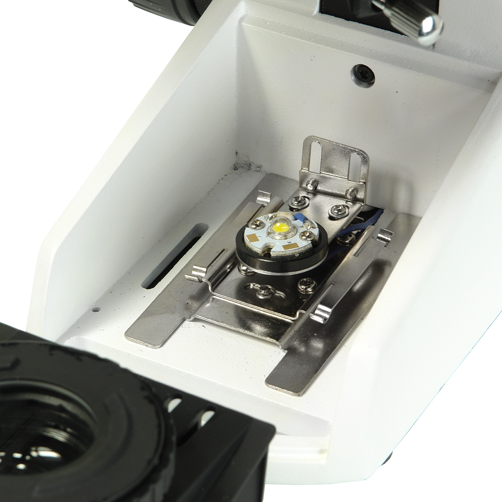 В качестве источника освещения используется встроенная светодиодная лампочка мощность 3 Вт. Она хорошо освещает область исследований и отличается долгим сроком службы и надежностью. Бинокулярная насадка наклонена под углом в 30°, что позволяет вести наблюдения в течение длительного времени и не испытывать излишнего напряжения зрения.