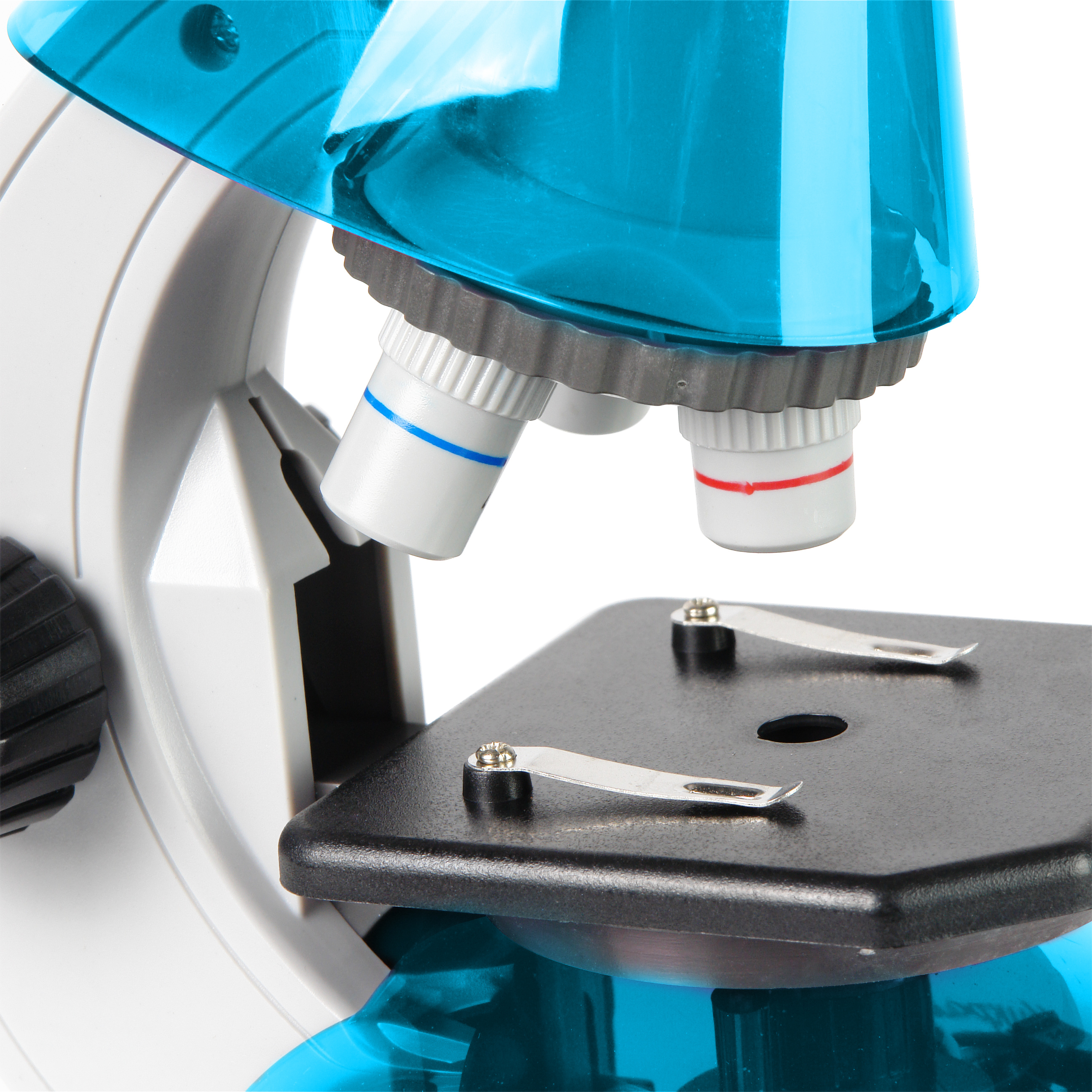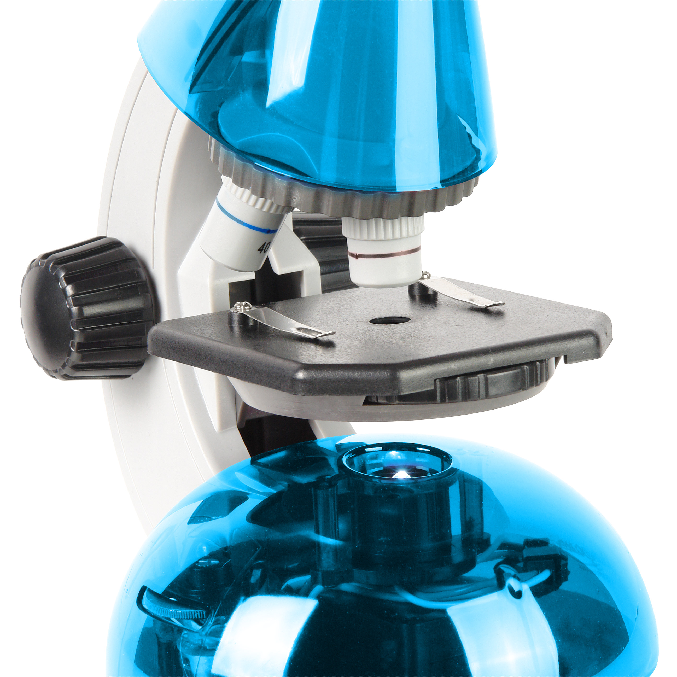 Микроскоп Микромед Атом 40x-640x (лазурь) предназначен для детей старше 8 лет и с его помощью можно проводить разнообразные исследования в проходящем свете. Микроскоп поможет рассматривать все без исключения предметы, пропускающие свет – срезы растений и тканей животных, структуры клеток, простейшие организмы, водоросли, минералы и кристаллы. Микроскоп имеет диапазон увеличений от 40х до 640х, что позволяет увидеть многих живых обитателей микромира – грибки, инфузории, амебы и во всех подробностях изучить строение многих насекомых. Возможность работать с небольшим увеличением от 40х позволит изучать монеты, небольшие кристаллы и электронные платы.