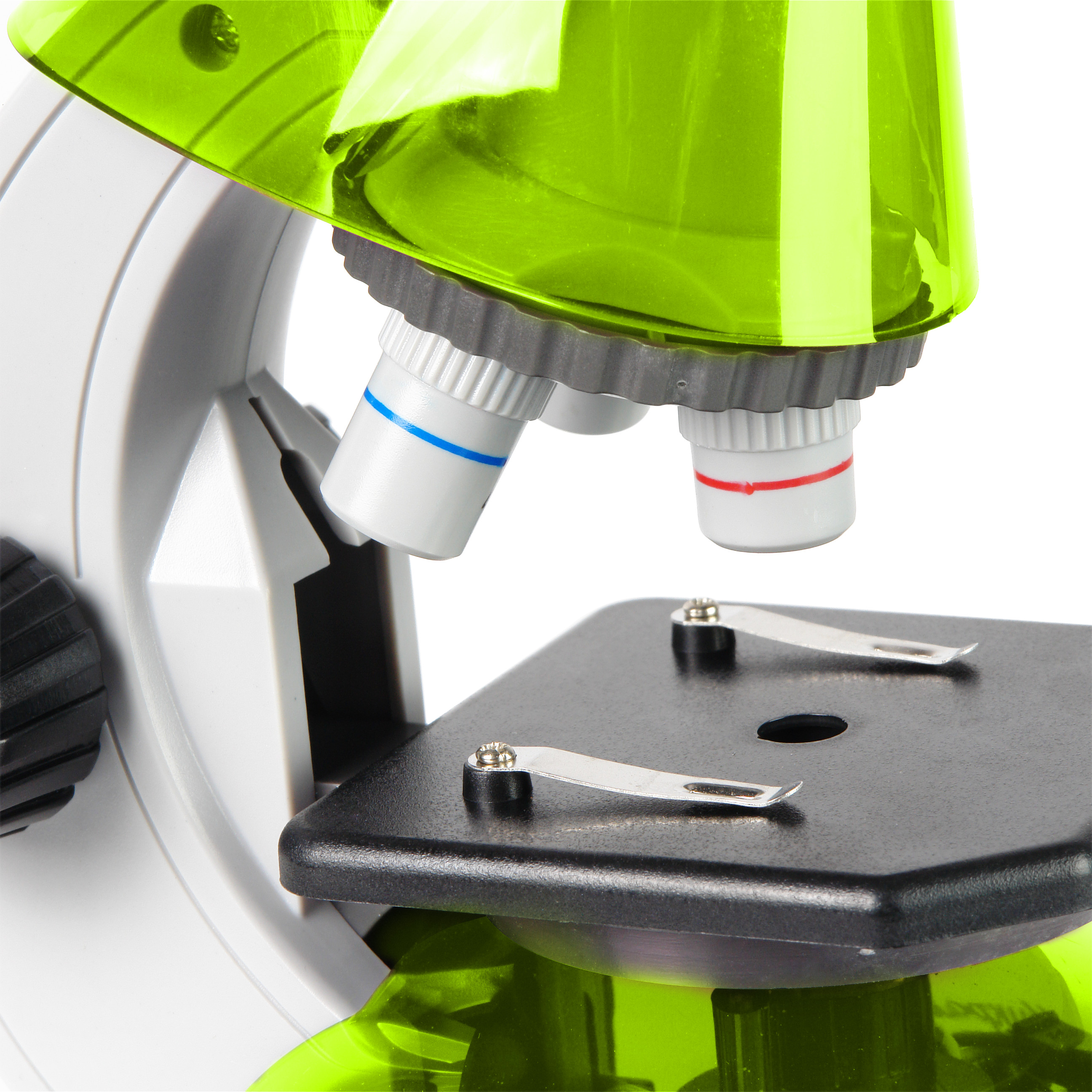 Микроскоп Микромед Атом 40x-640x выпускается в четырех эффектных цветах - аметист, апельсин, лайм и лазурь. Всегда можно выбрать микроскоп любимого цвета. Яркие детали корпуса изготовлены из прозрачного пластика, что позволяет видеть внутреннее устройство