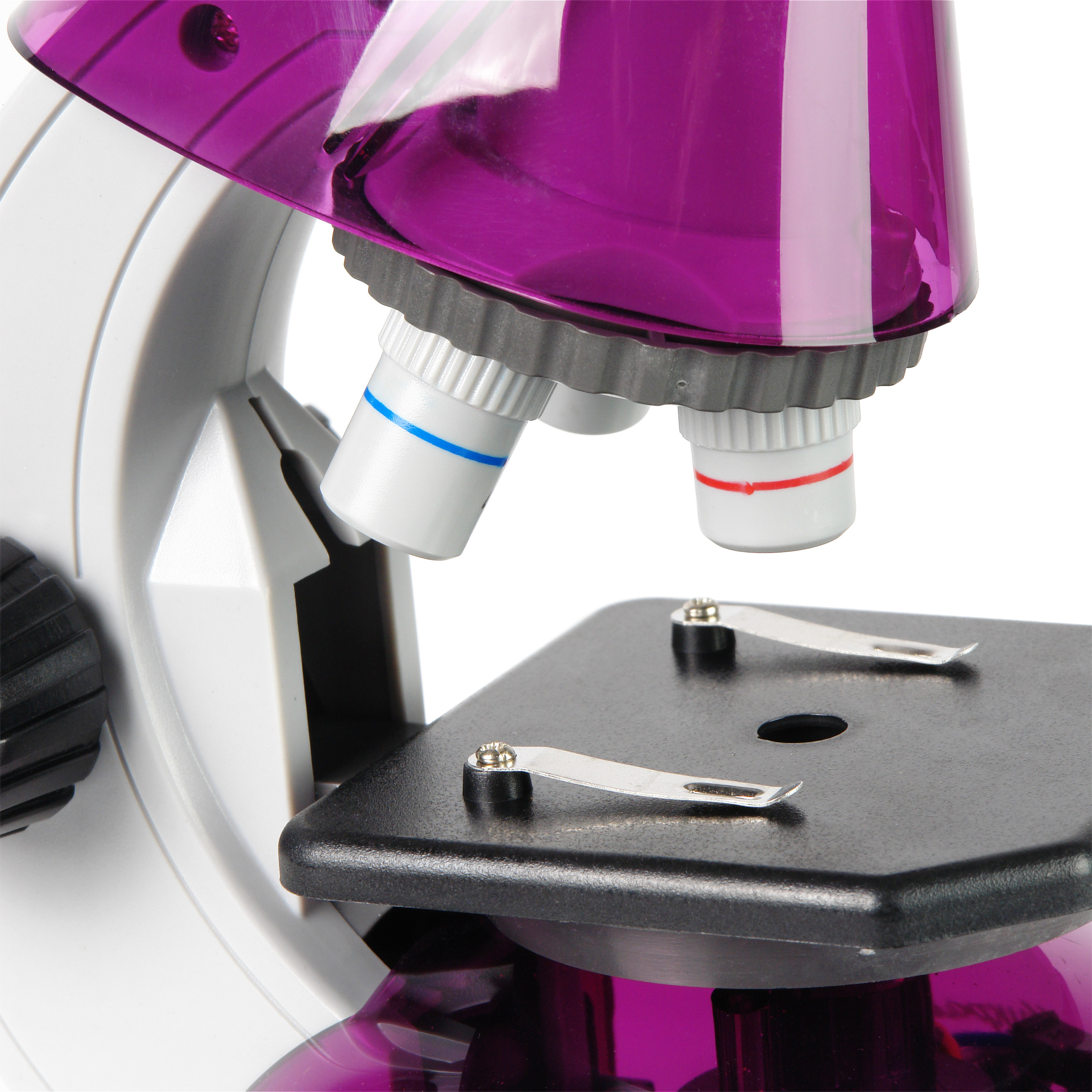 Микроскоп Микромед Атом 40x-640x выпускается в четырех эффектных цветах - аметист, апельсин, лайм и лазурь. Всегда можно выбрать микроскоп любимого цвета. Яркие детали корпуса изготовлены из прозрачного пластика, что позволяет видеть внутреннее устройство