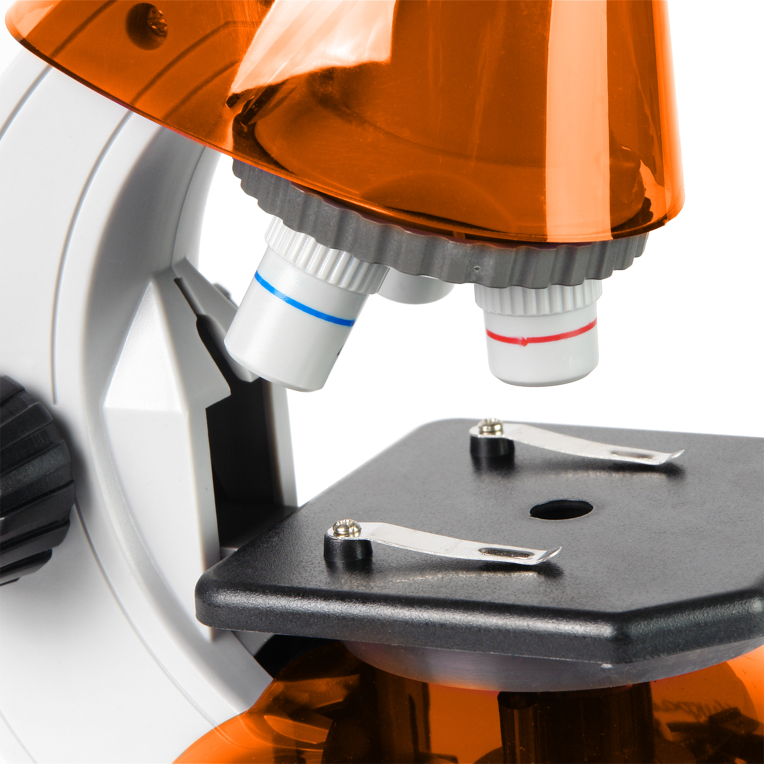 Микроскоп Микромед Атом 40x-640x выпускается в четырех эффектных цветах - аметист, апельсин, лайм и лазурь. Всегда можно выбрать микроскоп любимого цвета. Яркие детали корпуса изготовлены из прозрачного пластика, что позволяет видеть внутреннее устройство