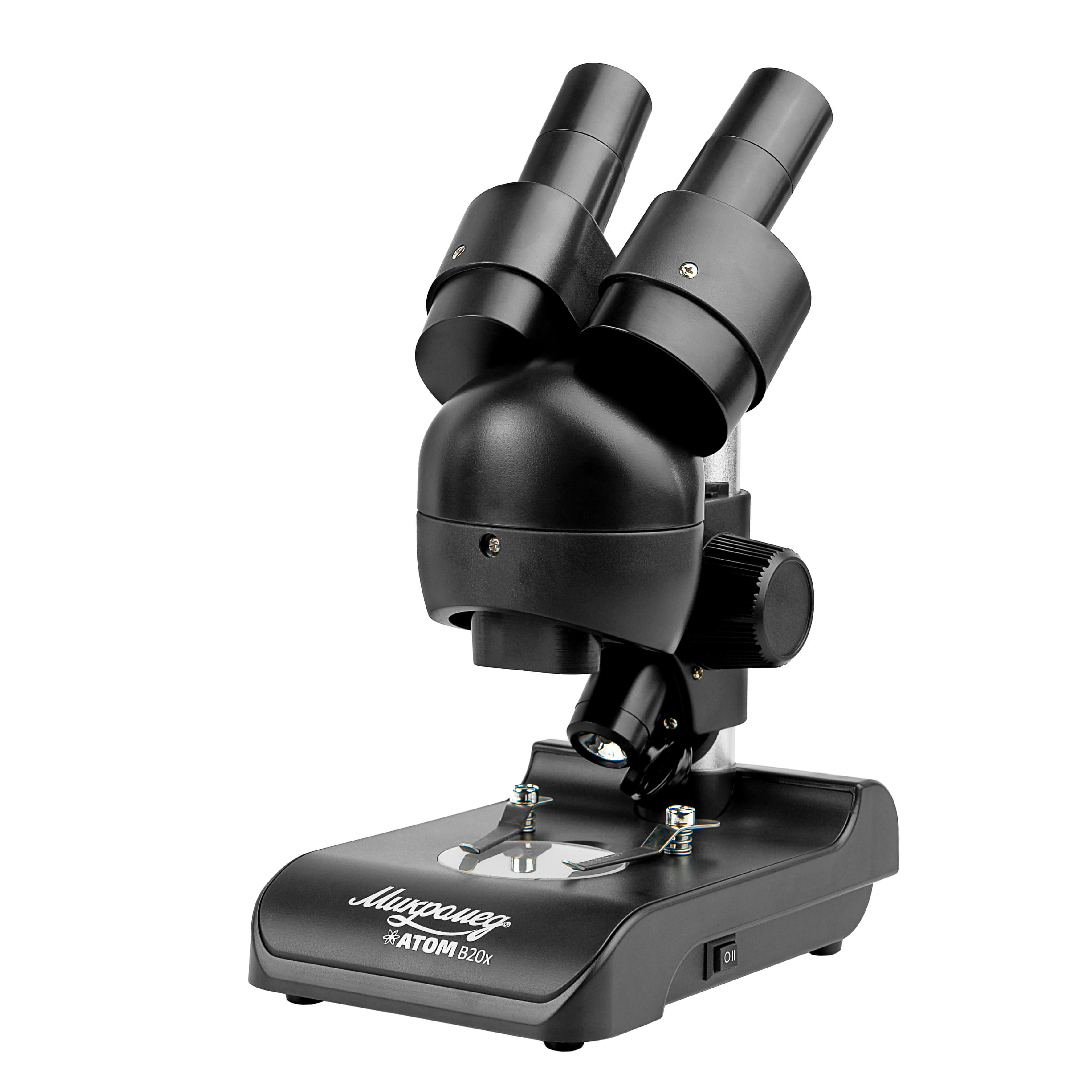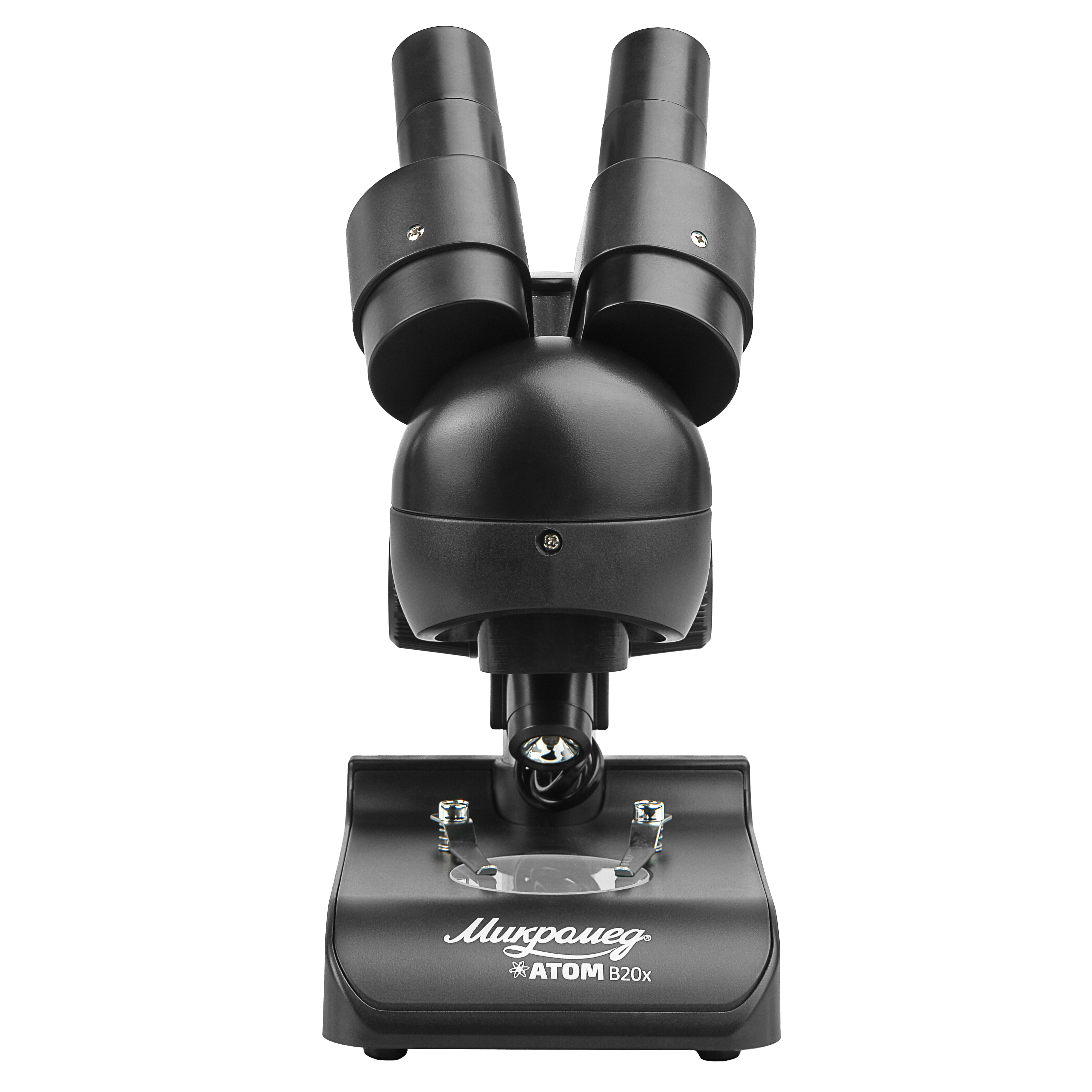 Стереомикроскоп Микромед Атом 20x предназначен для исследований в отраженном и проходящем свете. Для подсветки предмета в его конструкции предусмотрены встроенные светодиодные осветители. Осветитель отраженного света обеспечивает яркое и равномерное пятно в плоскости предмета. Осветитель проходящего света, снабженный матовым рассеивателем, встроен в основание, что также способствует равномерности освещения. Блок питания осветителей расположен в основании микроскопа.