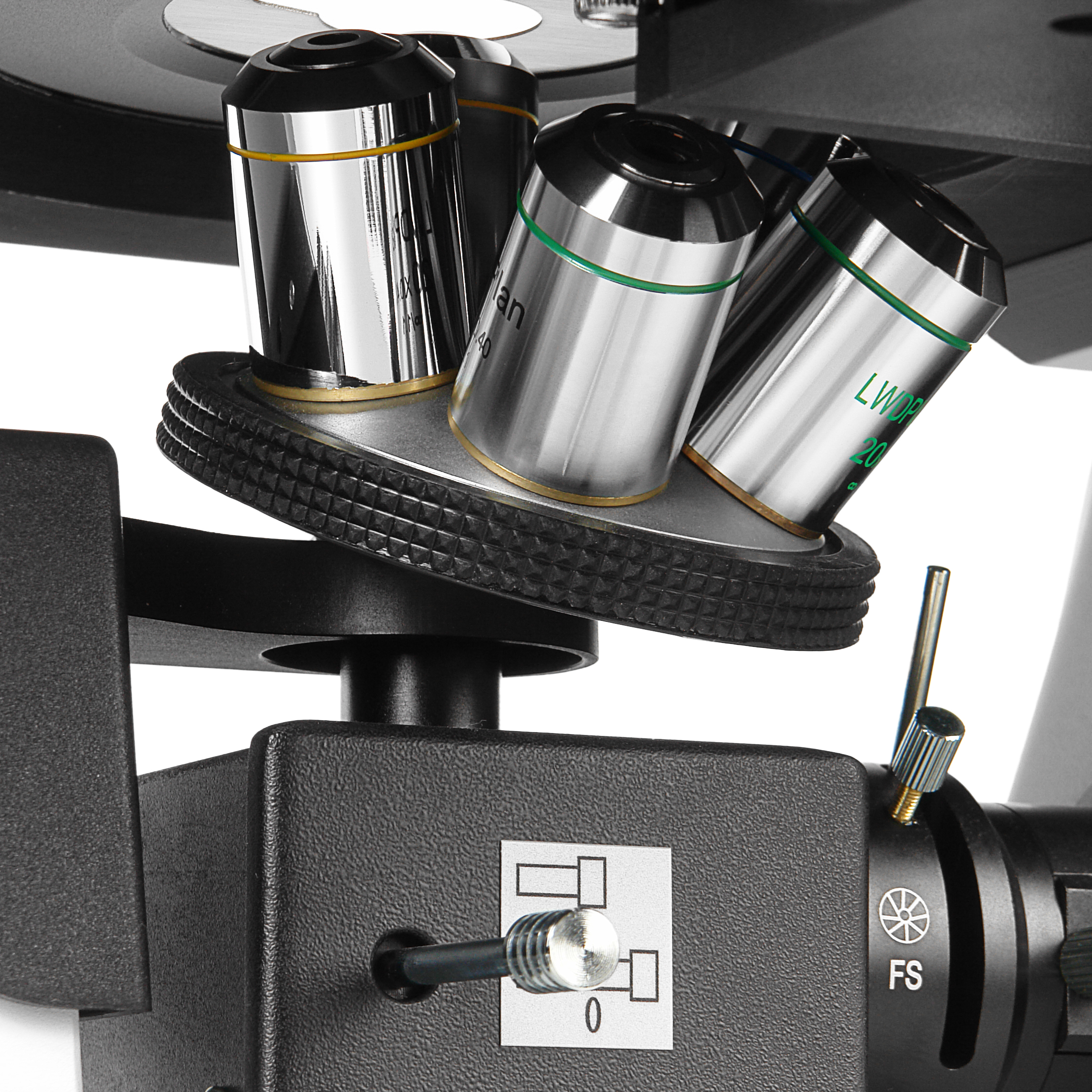 В базовый комплект микроскопа входят биологические объективы c коррекцией на бесконечность LWD Plan 10x/0.25, LWD Plan 20x/0.40 и LWD Plan 40x/0.60. Для исследований методом фазового контраста микроскоп укомплектован фазовыми объективами LWD Plan PH 10x/0.25P, LWD Plan PH 20x/0.40P и LWD Plan PH 40x/0.60P. По дополнительному заказу для микроскопа доступны объективы LWD Plan 4х/0.10, LWD Plan 60х/0.70, LWD Plan PH 4х/0.10 Р и LWD Plan PH 4х/0.10 Р.