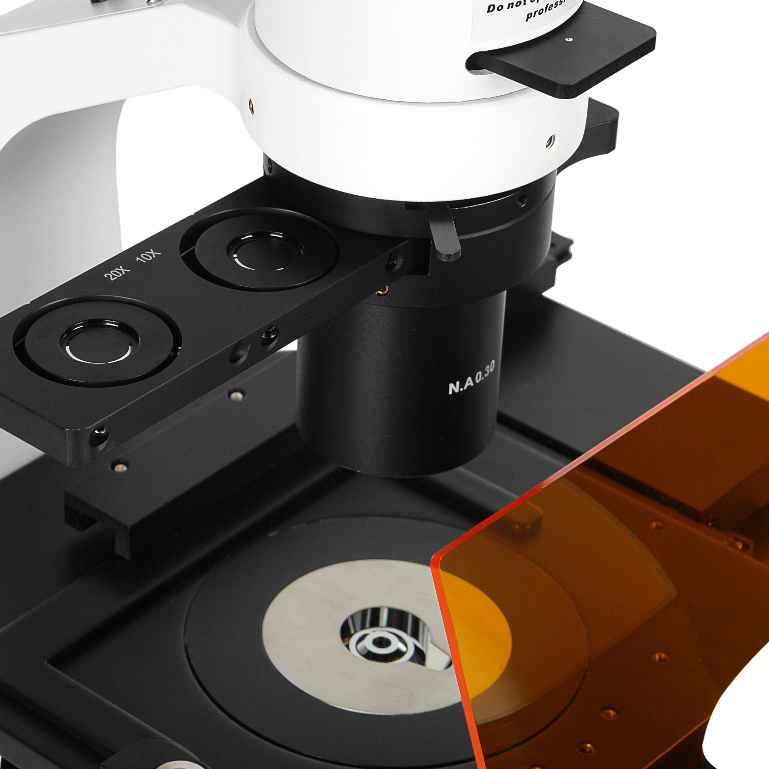 - Осветитель светлого поля с конденсором N.А.=0.30 со слотами для PH слайдера и светофильтров (установлен на штативе)