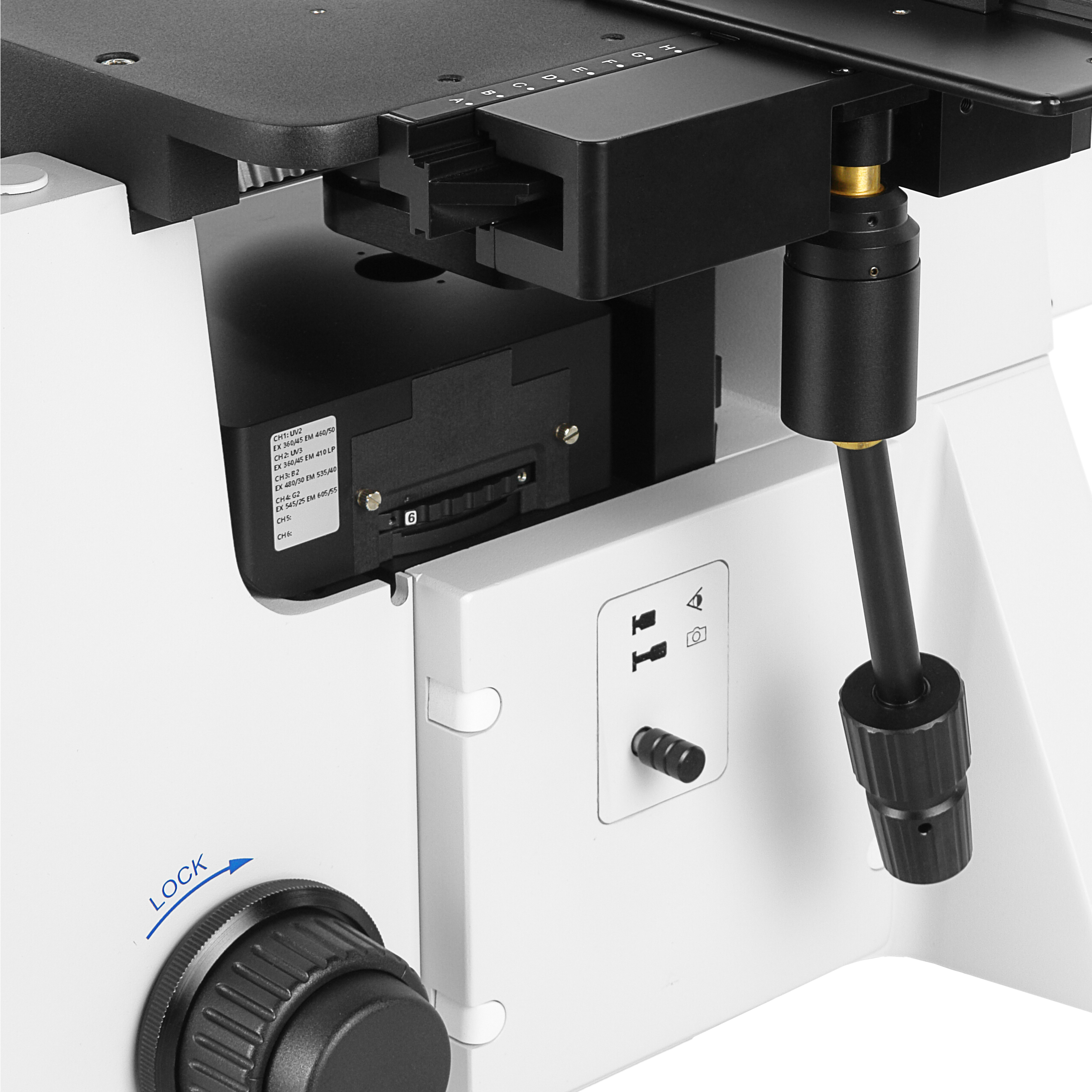 Инвертированный штатив микроскопа оборудован неподвижным предметным столиком, фокусировка осуществляется перемещением по вертикали револьверного устройства с объективами. Фокусировка производится с помощью механизма зубчато-реечной конструкции. Люфты механизма компенсированы демпфированием направляющих. Общий ход механизма составляет 15 мм. Механизм фокусировки имеет двухступенчатую конструкцию, включающую приводы грубой и тонкой фокусировки. Рукоятки тонкой фокусировки за один оборот перемещают объективы на 0,1 мм. Цена деления шкалы тонкой фокусировки 0,001 мм. Фокусировочный механизм имеет регулятор усилия хода грубой фокусировки, управляемый поворотным кольцом. Это позволяет настраивать комфортное усилие движения револьвера без его самопроизвольного опускания.